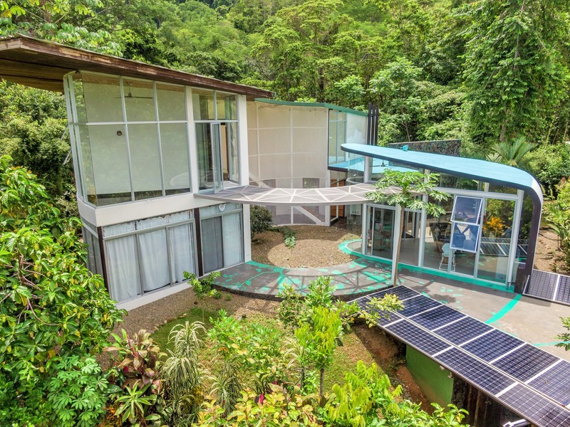 Unique, modern luxury home finished in 2012, for sale in southern Costa Rica(Ojochal) Boasting rainforest, mountain and ocean views, this stunning 2-storey home includes 3 bedrooms and 2 bathrooms, nice high ceilings in the kitchen and living room areas with towering glass walls.