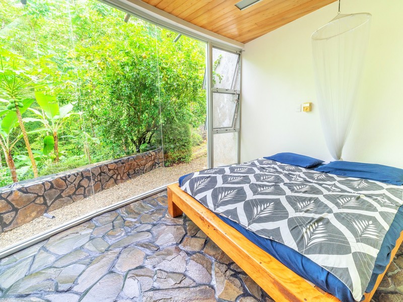 The property is on the edge of primary rainforest with a stream bordering the east side. Rivers and waterfalls are a short walk away. There are numerous fruit trees on the property.
