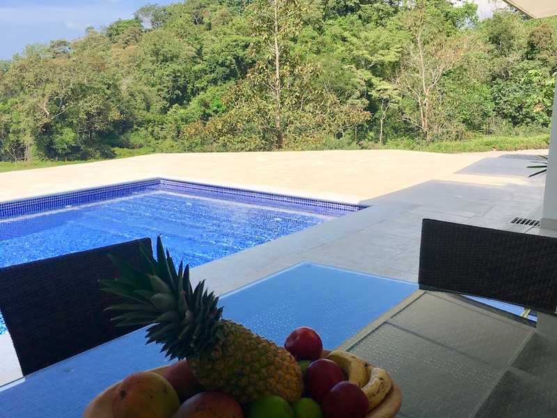 Picture yourself floating in a pool , listening to the cascading sounds of water while looking out over the Ocean with Monkeys to the right and Toucans to the left . All very private and secluded.