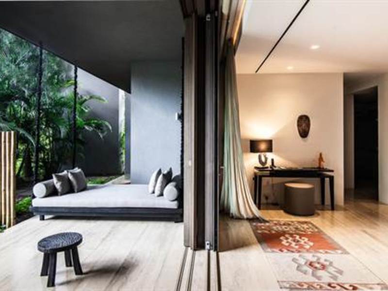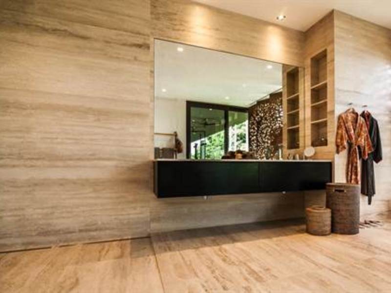 Upon entry, note the custom designed large teak doors and spiral staircase in the main entry hall. The hand carved Balinese doors slide open to reveal an incredible ocean view through the main living area out to the large veranda and outdoor living space featuring the Anthracite marble pool with heated jacuzzi with a filtering system that allows you to swim in fresh water treated with zero chemical or saline. In addition to the covered veranda you will find a teak sun deck and access to the tropical gardens. Monkeys often gather in the adjacent trees.