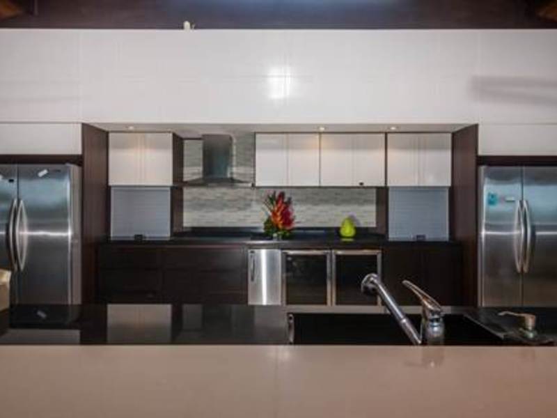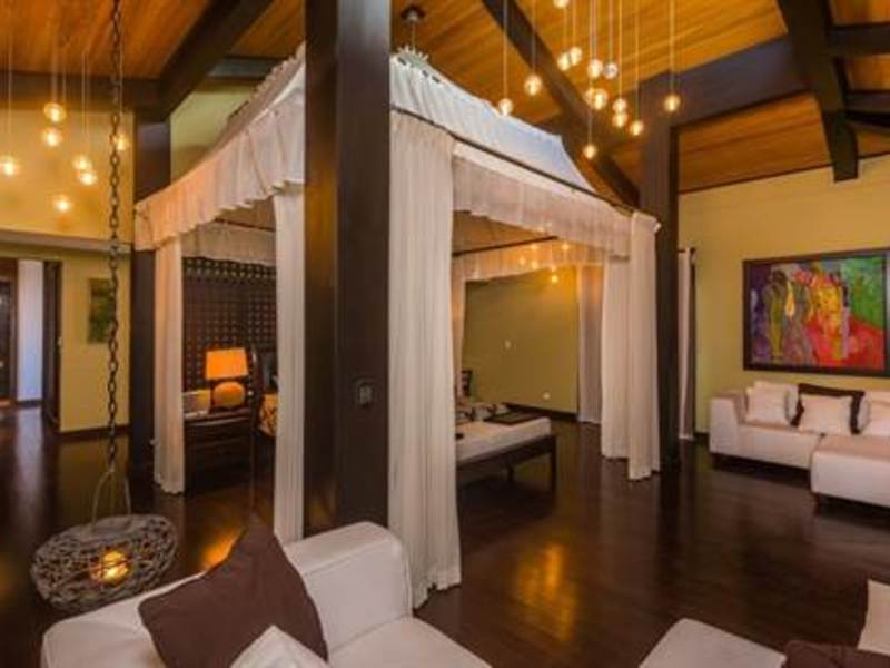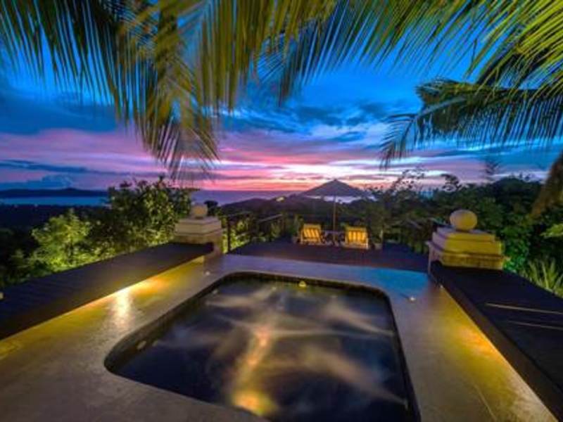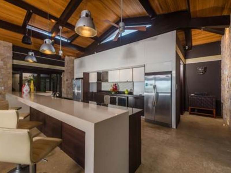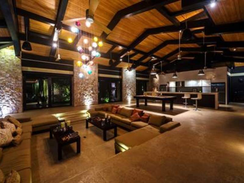 The villa represents a Costa Rican oasis for those looking to be close to the natural wonders of the country, for those wanting a taste of eco-adventure, and for those wanting a warm relaxing home that would be great for a private residence or a vacation rental. Wake up to the distant sounds of the howler monkeys and parrots chirping, step into the warm waters of the private infinity edge pool and gaze at the exquisite vista. At day or night, this house will Wow you! A few minutes from your doorstep and you will be at the white sands of Playas Conchal or Playa Flamingo, two beaches that are widely regarded as the most beautiful beaches in all Costa Rica. Choose to stay home and enjoy multiple terraces, sun loungers, various hammocks, a jacuzzi, a gorgeous private multi leveled pool with a sitting area in the middle of it, plus an outdoor theatre area to keep you entertained or relaxed. Surround sound stereos for music and special lighting is available through the inside and outside of the house to add to the ambiance.