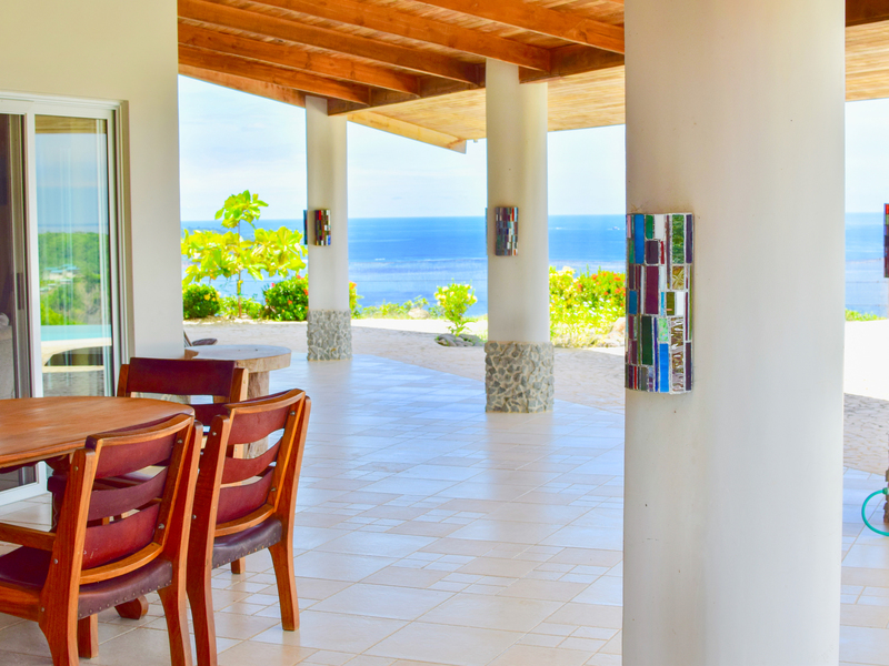 Built in 2009 this unique 3 bedroom home offers comfort and warmth from the entrance through the high quality wood finish and tasteful furnishings. As you enter the house, you are welcomed by the spacious living area with high ceilings and the glass front doors leading you to the ocean view which is present throughout the kitchen, living area and master bedroom. The shaded patio area is complemented by the infinity pool and jacuzzi at ground level on the edge of the hill giving it a true remote and unhindered view of the ocean.