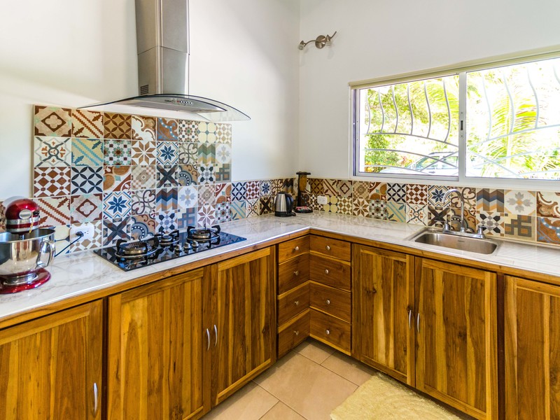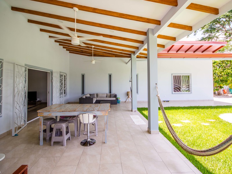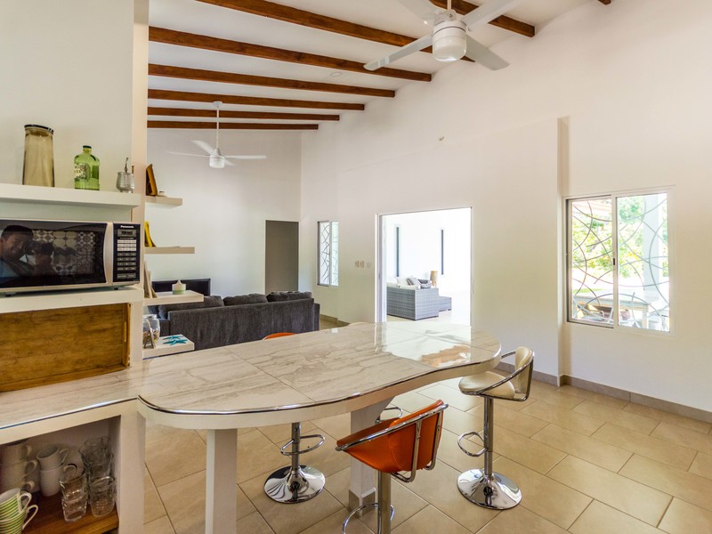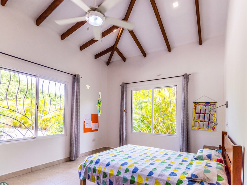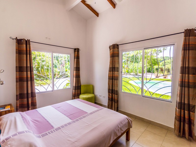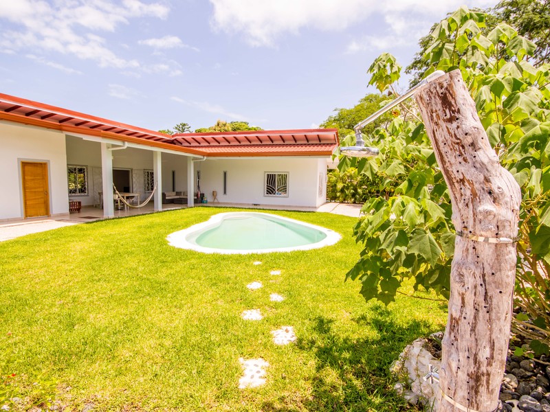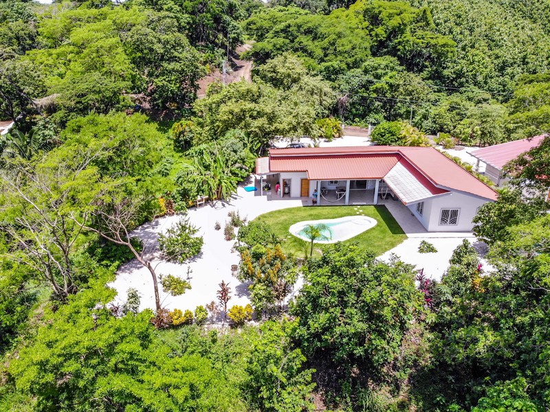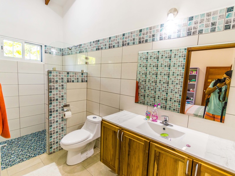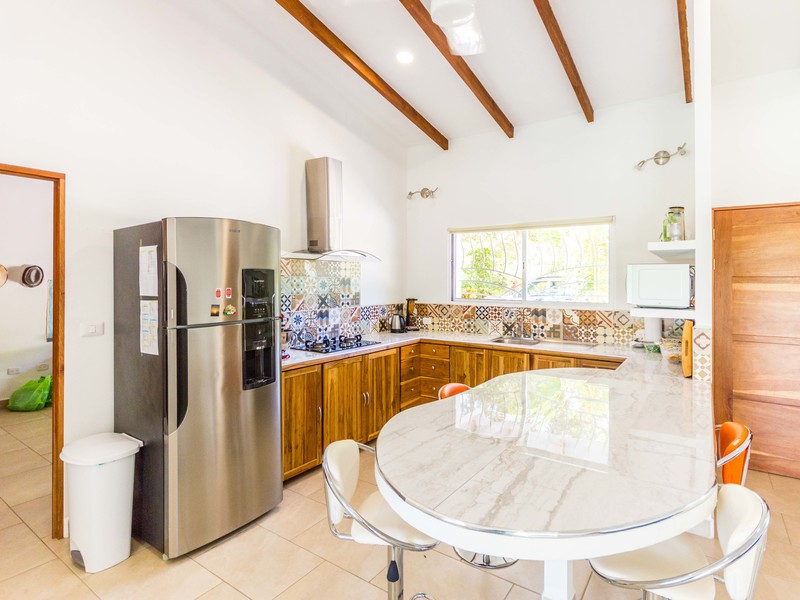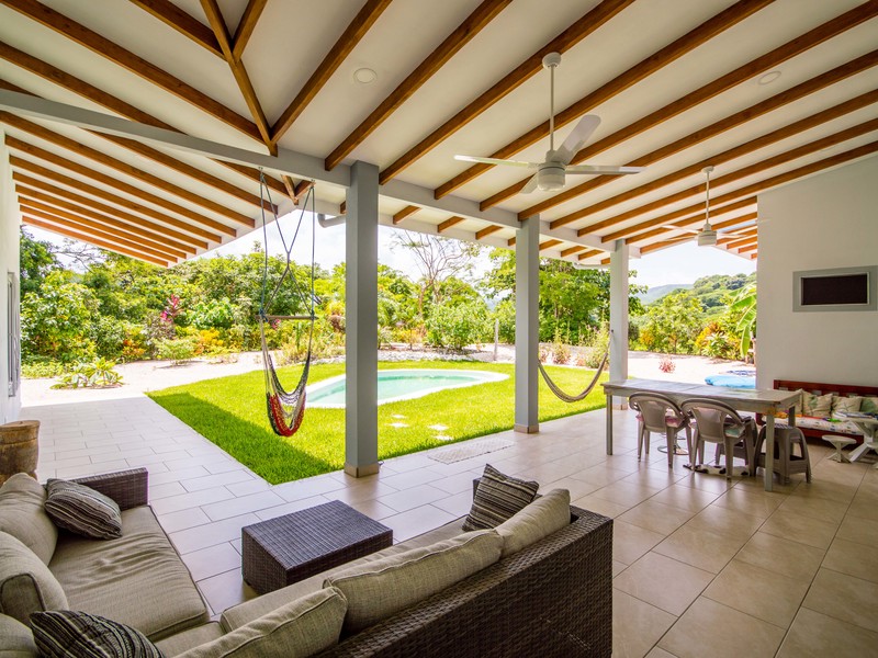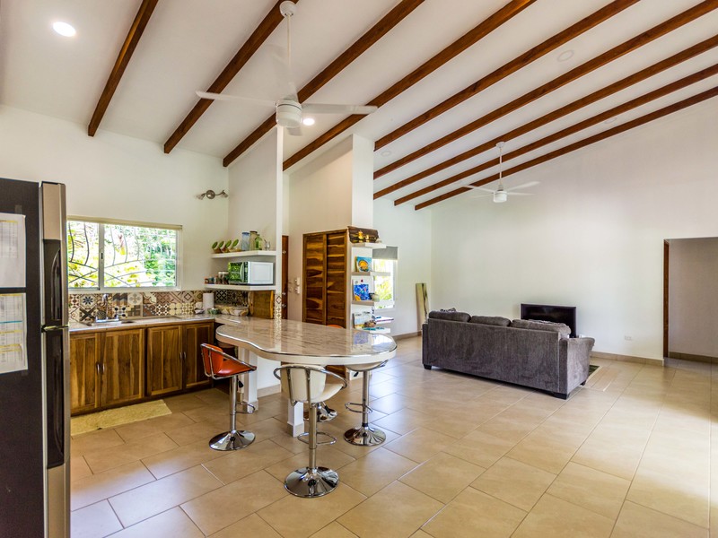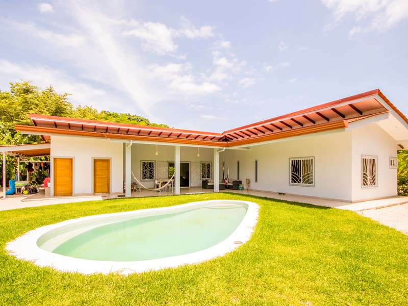 Casa Las Nubes is a stunning brand new house nestled in the mountains behind Samara with beautiful mountain views just minutes from town. This three bedroom, three bath house is spacious and bright. The open kitchen and living area has vaulted ceilings will exposed beams. It offers a large living spaces and bedrooms and an even larger covered terrace facing the pool.