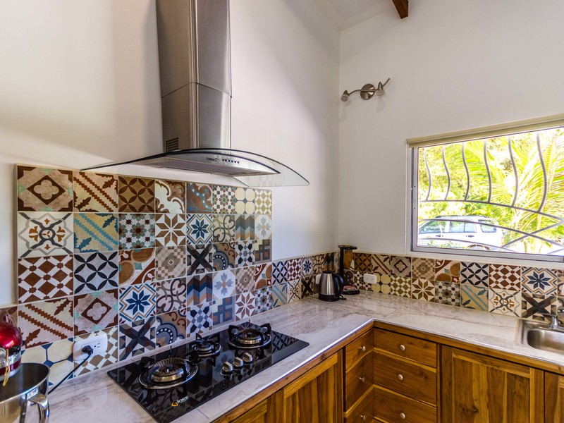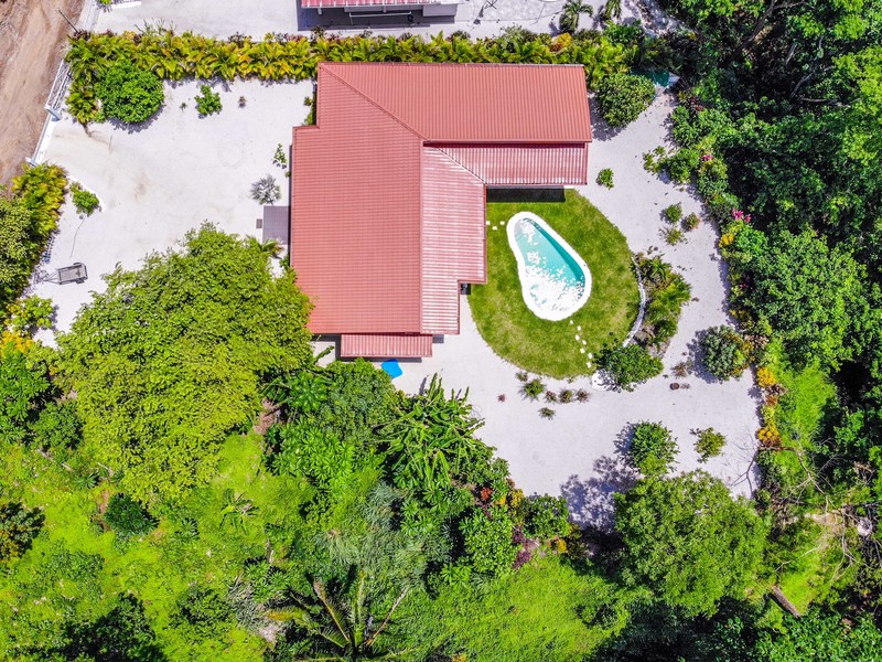 In addition to being surrounded by beautiful jungle, the home is surrounded by well-manicured gardens full of tropical gems and tons of fruit trees.