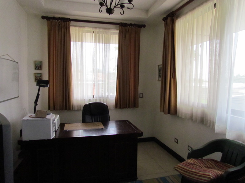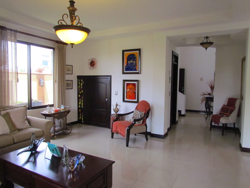 Large, 3B, 2.5B, Plus, Single Family Home in Santa Ana for Sale. This beautiful and spacious home, in a gated residential community, also has its own gate, enclosed two car garage, maid’s quarters, and large garden. The first floor features a foyer; a large lighted kitchen with breakfast area, granite countertops, lots of wood cabinetry, a large pantry and a door to the main dining room; a spacious living and dining room with lots of natural light and sliding doors giving access to the covered terrace and BBQ area backyard. The first floor also has a half bathroom, garage with electric door, a room or studio for work, storage space, laundry area and maid’s quarters with full bathroom. On the upper floor you’ll find three spacious bedrooms and a family room. The master bedroom has a large well-lit space, a balcony, large walk-in closet and private bath with Jacuzzi, tempered glass and ventilation. The other two bedrooms all with wooden closets, share a full bathroom with a Jacuzzi, good lighting and ventilation. Finally, the roof has clay tiles, which cools the entire interior and combines splendidly with all the tropical, beautiful gardens outside. This beautiful home has fine finishes such as porcelain tile floors, aluminum doors and windows with screens on all of them, an alarm system and its own perimeter wall. Located in an easily accessible area, this Residential community has 24 hour security, nice big parks, and is pet friendly. Located close to schools, shops and transportation.