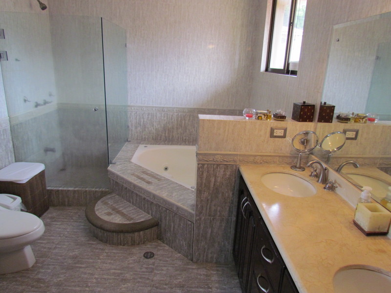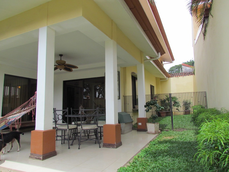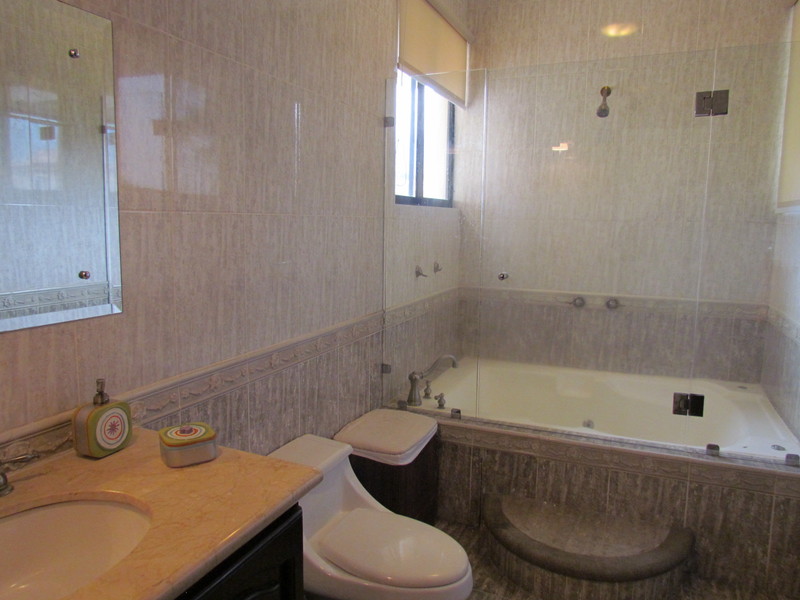 Amplia Casa Familiar con 3H, 2.5B, Hab de Servicio, en Santa Ana, Venta. Esta bella y amplia casa en residencial con guarda y portón de entrada cuenta con su propio portón también, garaje para dos carros, cuarto de servicio completo, amplio jardín, etc. La primera planta ofrece un lobby, Una gran cocina muy iluminad con antecomedor, tope de granito, bastantes gabinetes de madera, una gran despensa y puerta hacia el comedor principal; una amplia sala y comedor con gran iluminación y puertas corredizas que dan acceso a la terraza y al área de BBQ respectivamente, la cual es techada. La Primera planta también cuenta con medio baño, Garaje con puerta eléctrica, un cuarto para trabajos manuales o studio, bodega, área de lavandería y habitación de servicio. En la parte superior de la casa Encontramos tres amplias habitaciones y una sala de star y de televisión; la habitación principal, posee un amplio espacio muy bien iluminado, con balcón, con su walk-in closet y su baño privado con jacuzzi, vidrio temperado y ventilación. Las otras dos habitaciones cuentan todos con su closet en madera y comparten un baño, este también con jacuzzi, buena ventilación e iluminación. Finalmente, los techos han sido terminados en teja de barro, lo que le brinda mayor frescura a todo el interior y combinan espléndidamente con todo el entorno tropical que poseen los bellos jardines del exterior de esta casa. La casa tiene finos acabados como pisos de porcelanato, puertas y ventanas en aluminio con cedazos en todas ellas, también tiene sistema de alarma y su propio cerramiento perimetral. Ubicada en una zona de fácil acceso, este Residencial cuenta con seguridad 24 horas, un lindo parque, muy amigable con los animales, etc. Cerca de Centros Educativos, tiendas y Transporte.