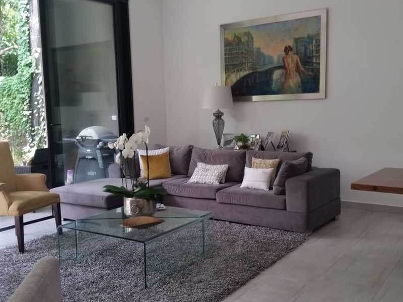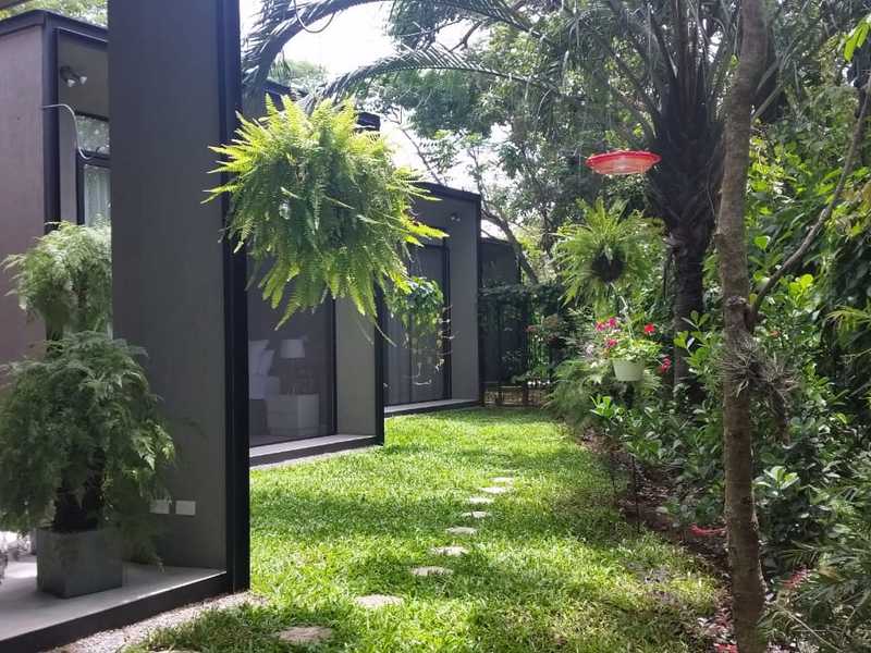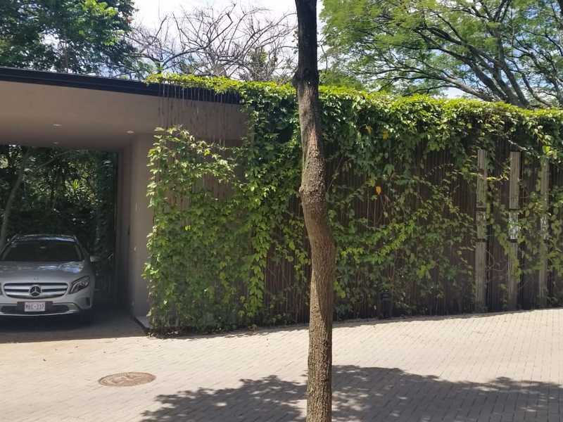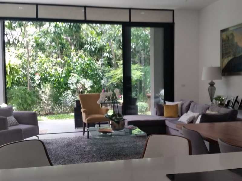 For sale a single-storey house of 255 m2 of construction in a lot of 350 m2, in Santa Ana in a gated community. The house has 3 bedrooms each with bathroom, maid's room with bathroom, living room, dining room, terrace and backyard with garden, guest bathroom. Includes 4 air conditioners, curtains and the white line, has less than 1 year of use, 3 car garage.