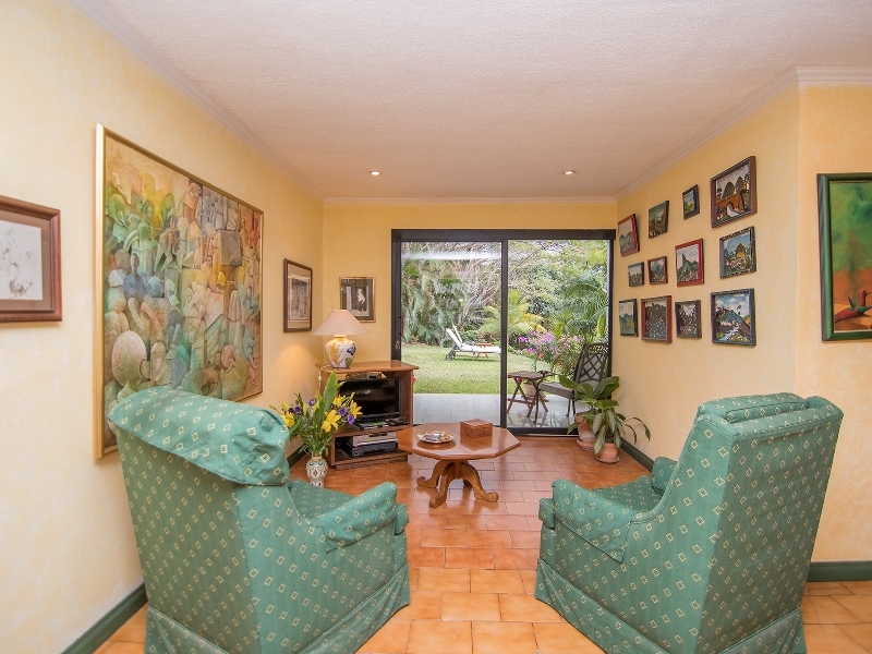 Are you looking for a house that is private and serene with a pool and large yard yet close to everything? Then this home is for you. It is in a quiet residential area of Pozos de Santa Ana and sits back from the street affording you privacy, security and tranquility; yet close to many private schools, Escazu, Lindora and Santa Ana. The lot is beautifully landscaped with mature palms, fruit trees and tropical plants and has a delightful pool. Almost every room in the house has beautiful views of the gardens. You’ll enjoy entertaining in the formal living room, formal dining room and the adjacent balcony with sunset views.