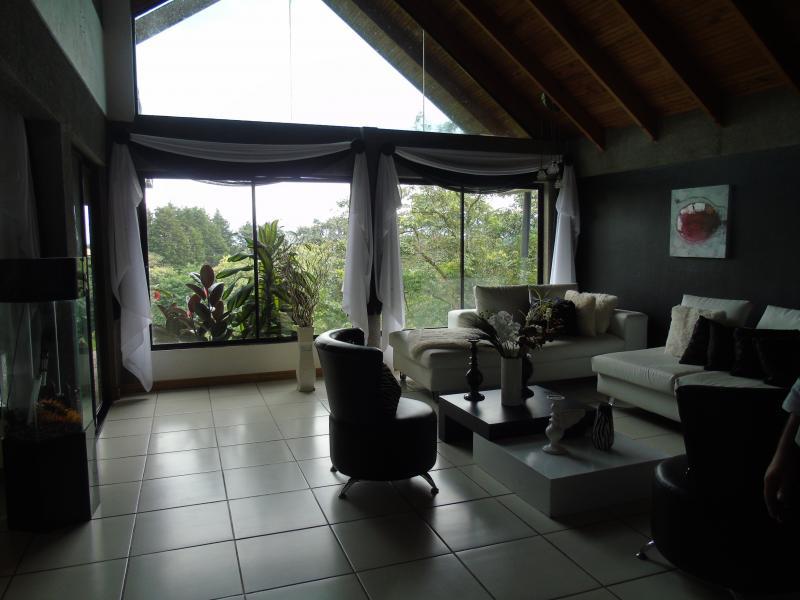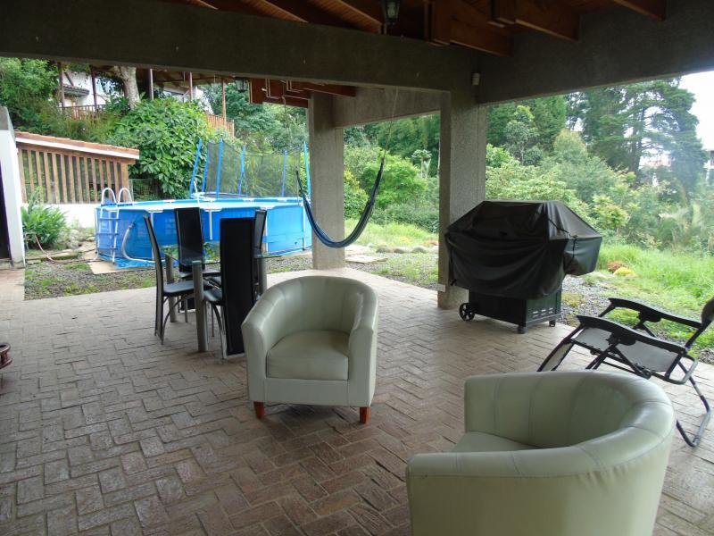 Casa amplia con linda vista en San Ramón de Tres Ríos . The house is located in a condominium of four independent houses which have large green areas, electric gate, BBQ area, tennis court. At the entrance of the house it has a large garage for two cars indoors and eight outdoors, with a large closet and cellar to store. The main level features a guest bathroom, a large newly remodeled kitchen with breakfast bar, natural lighting, and a beautiful view. In the back is the laundry room, full service room with its own bathroom. On the ground floor we find a hall, a comfortable TV room, a spacious room with a beautiful view and great natural lighting, the main dining room. Outside there is an ideal terrace to enjoy the view, it has a living room, BBQ and dining room. On the upper floor there is a study area, with a fireplace and a TV room. The main bedroom is spacious, with a nice view, a full bathroom and its respective closet, in the upper part of the bathroom and the closet there is a large attic. The two secondary bedrooms are spacious, each one has its respective attic open to the bedroom, one of them has a large WC. They share a spacious bathroom with a Sauna design and a white closet. This house has an Architecture award for its design .... The condo has no maintenance and is pet friendly