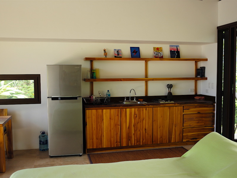 The property is 1.5 Ha continuous from the LaUnion road to the Ballena River below. At the top of the property on a flat knoll sits the newly constructed single bedroom casita and pool. The design features accordion windows at both front and back walls allowing the home open into a covered breezeway. The home maximizes comfort levels and fully incorporating inside/outside living with accordion screening for blocking insects attracted by the lights at night time. From the bed located in the center of the room you having dramatic sunsets over the Whales Tale and each morning watch the sunrise over the mountain peaks from behind the casita. The deluxe casita has a full bath and kitchenette and an outdoor shower for the pool. Around the casita you will find plenty of space to expand and create a larger primary residence or family home The existing casita would be an ideal master suite while adding a structure with a full size kitchen and family room and if desired additional bed/baths.