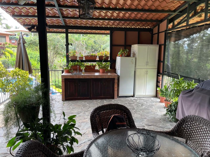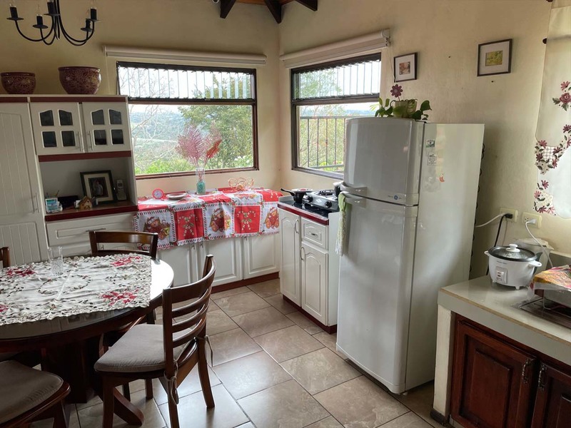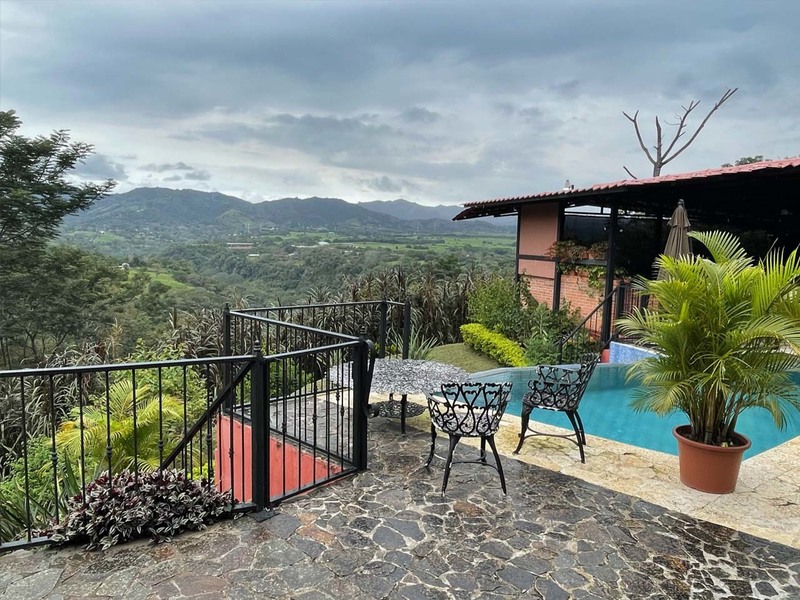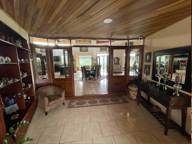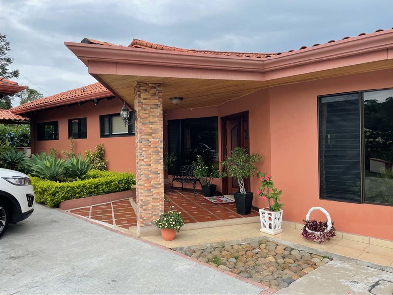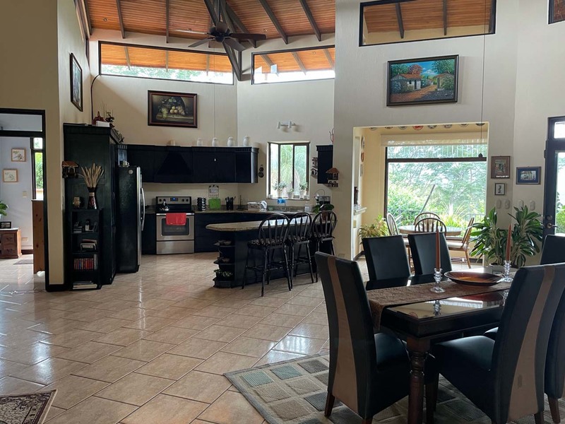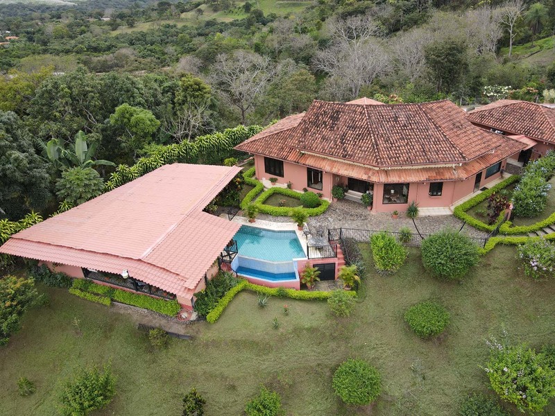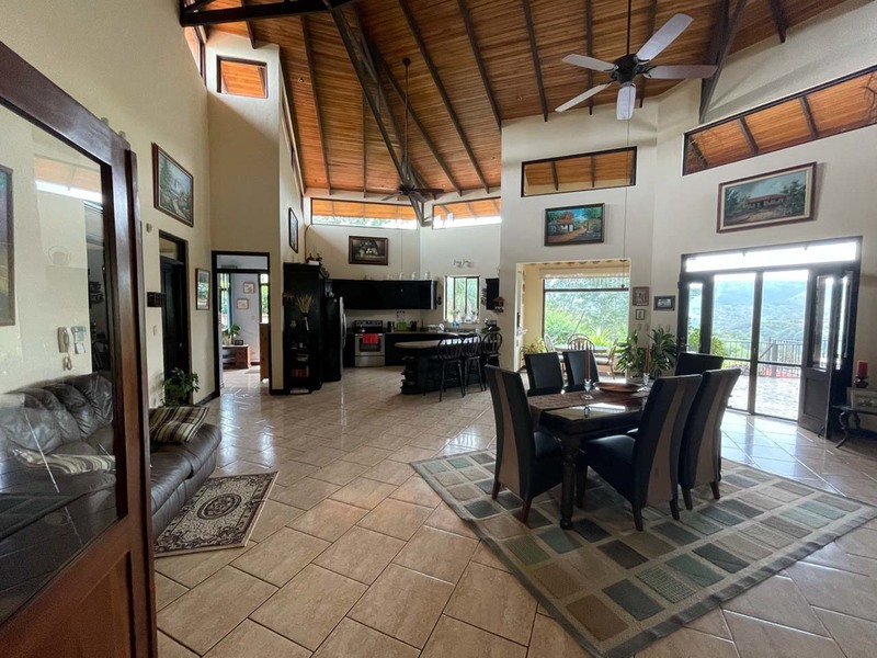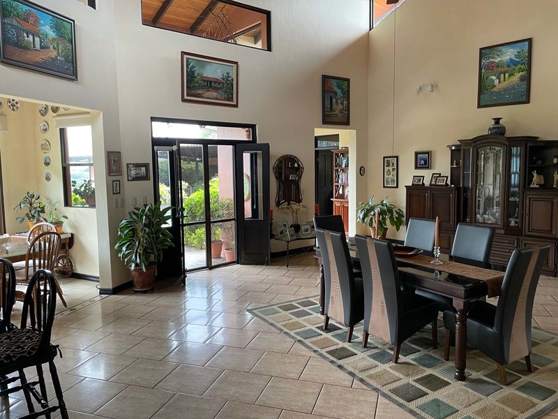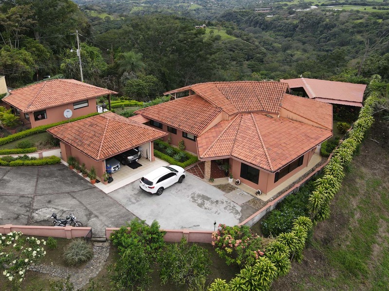 This is a beautiful house with a panoramic view. This beautiful property is 9213 square meters and has 417 square meters of construction. This property has excellent views of the central valley and volcanoes. It is located in one of the most exclusive areas of Atenas with a lot of privacy and away from the noise of the city and vehicles. This home features 3 bedrooms, 2 baths, with large rancho. There is an infinity pool, garage with double parking space and additional storage space. There is a large open plan kitchen, dining room and living room. You will like the master bedroom from the other 2 bedrooms. The master bath includes a corner jetted tub with large windows facing the view with more than enough adjacent dressing room space for two people. Cathedral ceilings, spacious living room and dining room with additional sitting area. It has a beautiful spacious kitchen with great cabinets and a large island. In addition to all of these great features, there is a separate casita for renters or guests. In the casita you will find two bedrooms, bathroom, and kitchen, dining and living area. You really need to see this property if it is your price range. Call or email us today at Coldwell Banker Pura Vida Paradise!