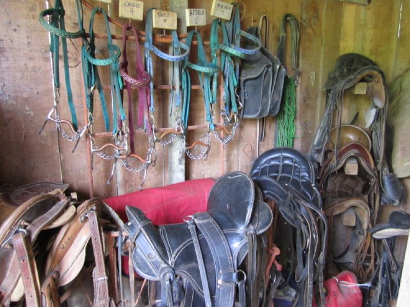The 8-stall barn is a comfortable home for the Rancho Tranquilo horses, which are included in the sale. The barn has a tack room, storage room, hay loft, and full toilet facitilities for tour guests.