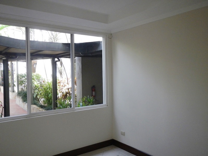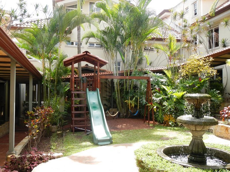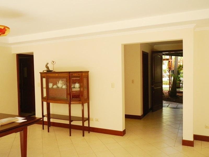 This beautiful, 340m2 (3,668 square feet), secure condo in Jaboncillos is perfect for the growing family and entertaining. As soon as you enter this lovely home you are drawn into the open living room/dining room that is highlighted with a small fireplace and an abundance of natural light. Just beyond is the private, landscaped patio. The kitchen features granite counter tops and snack bar with plenty of traditional wood cabinets. There is a small office on the first floor that could also be converted to another bedroom, half bath, laundry area and maid’s quarters. The second floor has a large master suite with a walk in closet and bath with a tub, double sinks, hardwood cabinets and granite counter tops. There are two more comfortable bedrooms that share a full bath with fine finishes. All of the bedrooms enjoy views of the mountains and Poas with lots of natural light and great air circulation. There is also a nice media room for the family’s enjoyment on the second floor. The third floor is a wonderful loft with high ceilings and a small balcony overlooking the patio and mountains. Perfect as a play area for the children, another office or bedroom. Located in a small condominium of only 8 homes at the end of a cul de sac with underground parking for 3 cars accessed by an elevator and stairs. The guard is known to help carry your groceries and the area is perfect for daily walks. Just minutes to downtown Escazu and Paco, stores and restaurants. There is also a small play area and 24/7 security.