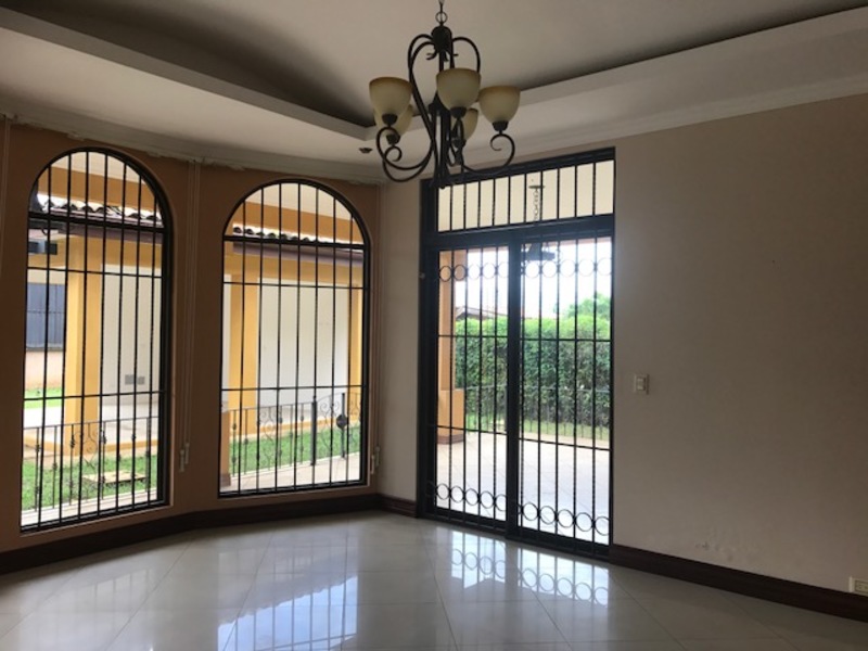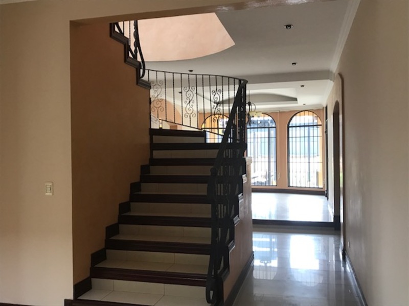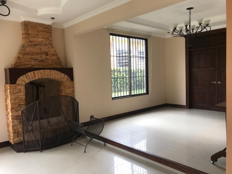 The house is located in one of the most exclusive condominiums in the Curridabat area, which has 24 hour security, various green areas. Upon entering the property we find a spacious hall which allows us to go to the social area of the house or to the private area of the property. In the social area we find a large room which has two environments, one with a cozy fireplace and the other area with a large Bar area taking advantage of the area under the stairs. In this space there is also a large TV room which also communicates with the garden and the dining room of the house. In a separate space we find the dining area which has easy access to the kitchen and the property's garden. The kitchen is independent in the house, it has large wooden furniture, granite countertops and a large island to expand the work area, the kitchen communicates independently to the laundry area, the service room with its full bathroom and an access to the garage. In the garden area there is a large BBQ area and a closed space to place the gym machines and it has a space for a Jacuzzi, a large green area for a children's Play. In the private area of the house it is located on the second level which has a secondary bedroom with its full bathroom and two other secondary ones that share a full bathroom, all of them are very spacious with excellent natural lighting. The main bedroom is very spacious which has a balcony, an office, a complete bathroom with Jacuzzi, separate shower and a large toilet. The house has an attic on the third level which serves as an office or play area. The maintenance fee is included in the rent, pets are accepted in the condo