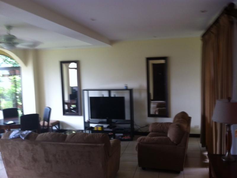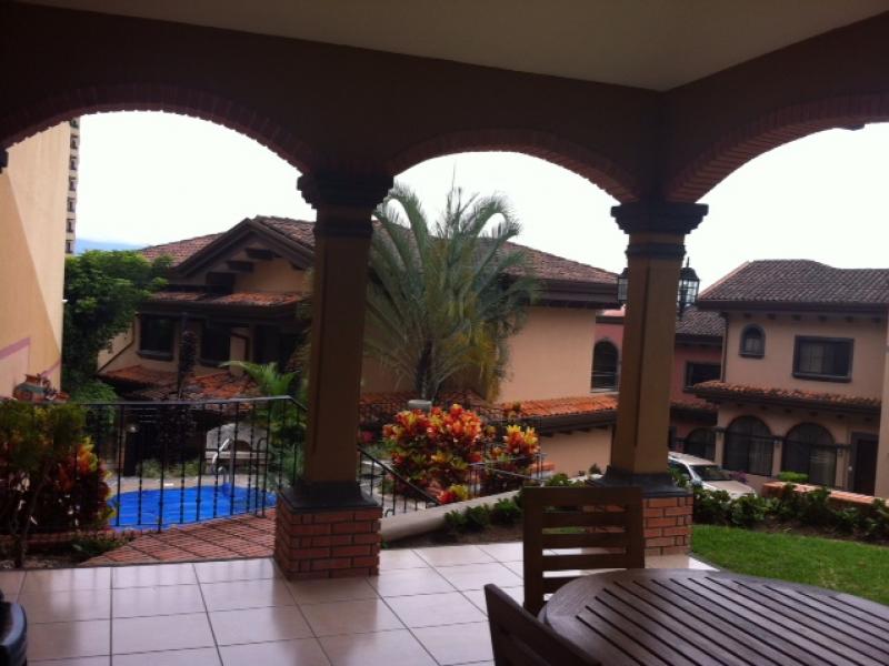 Wonderful house fully furniture for rent in Escazu. Security 24/7. In a great ubication. A short distance from shopping, gyms, schools and hospital. The house has two level. In the fisrst floor a nice dining room and living room. The kitchen is beautiful and has a maid´s room with a full bath room. It has four rooms and two bathrooms. The balcony is cozy! The condominium has club house, BBQ, and Pool. Is a wonderful house to live and enjoy !!