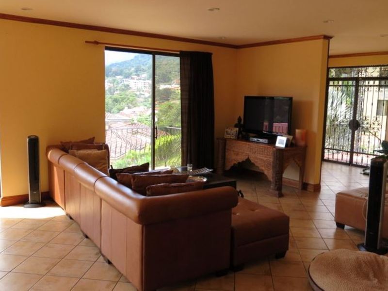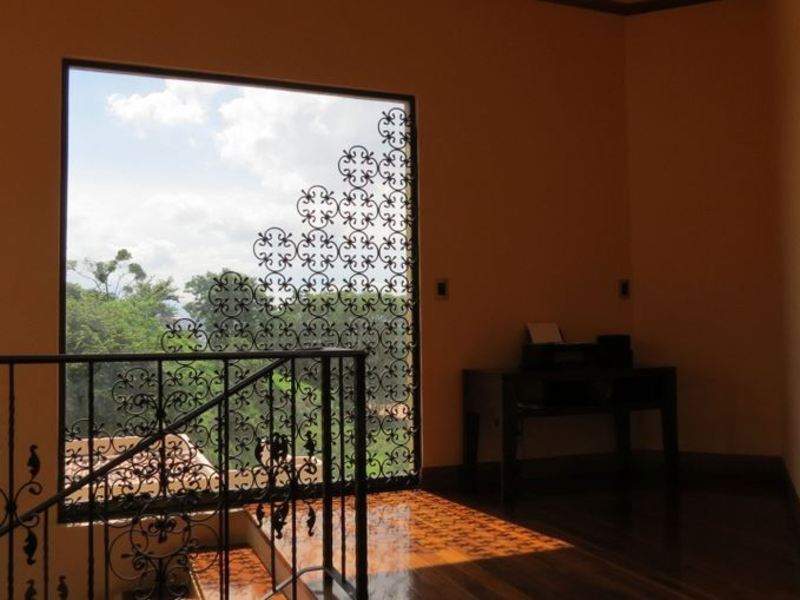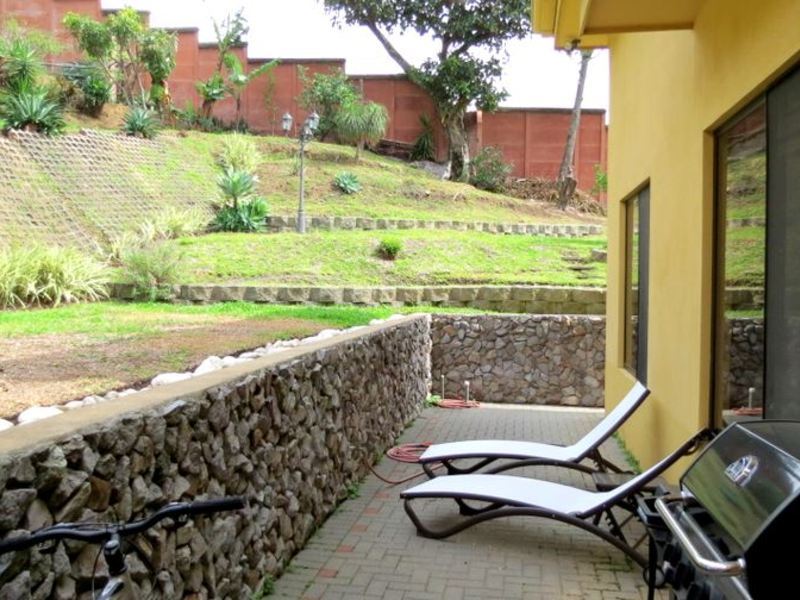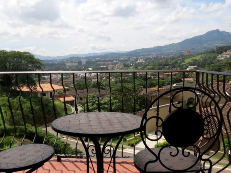 Spacious 3-level house in exclusive gated community in Escazú for rent: This home has a great location since it's near several business and commercial centers in Escazú, such as Multiplaza, Avenida Escazú, Distrito 4, and CIMA Hospital. The house has a total lot area of 1140 sqm and 502 sq meters of construction. It has 4 bedrooms, each with a full bathroom and walk-in closet. It also has great city views, where you can enjoy from most of the rooms and nice balconies in the house. In this house there are two very large master bedrooms, one on the first floor and one on the second level. It also has a wide kitchen with a nice island and pantry, and many appliances are included. There's also a spacious living room and TV room. Additionally, the house has a nice backyard, with its own irrigation system and terraces where you can enjoy the weather in Escazú, and 2 parking spaces with space for more. It is located on one of the nicest and most exclusive gated communities in Escazú, having 24 hour security, a clubhouse, walking trails, tennis courts, and parking for visitors. Other features included are maid's quarter, laundry room, high ceilings, 2 hot water tanks, water storage tank, Medlar wood floors, and storage room.