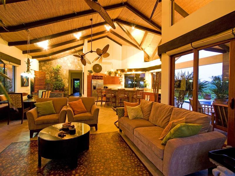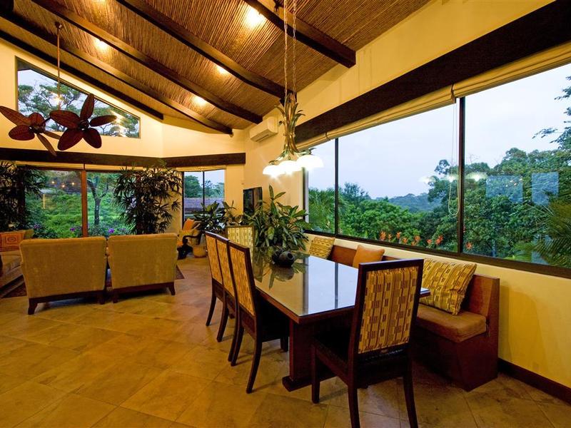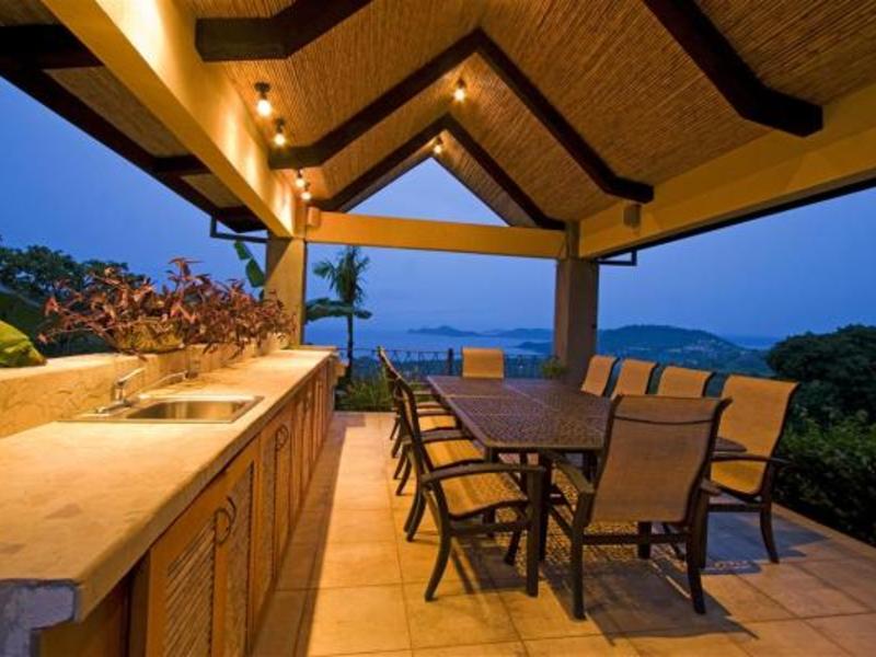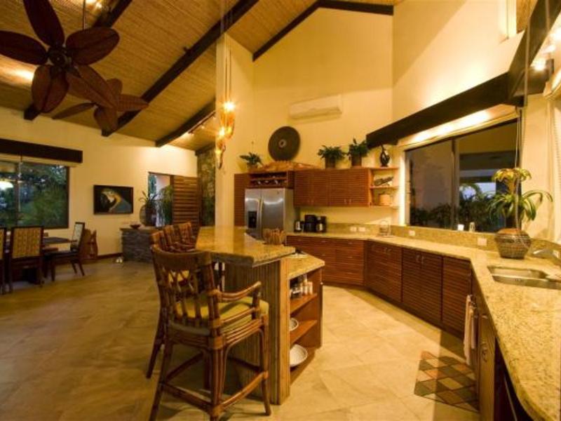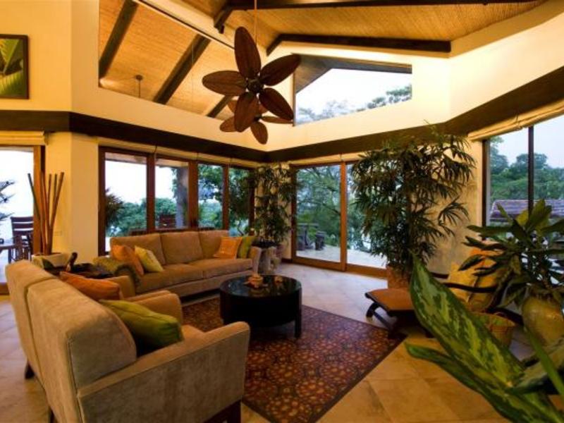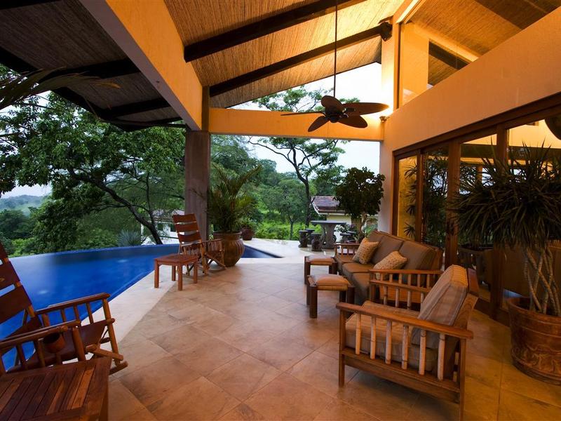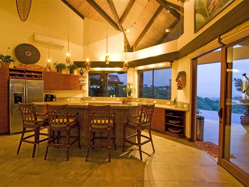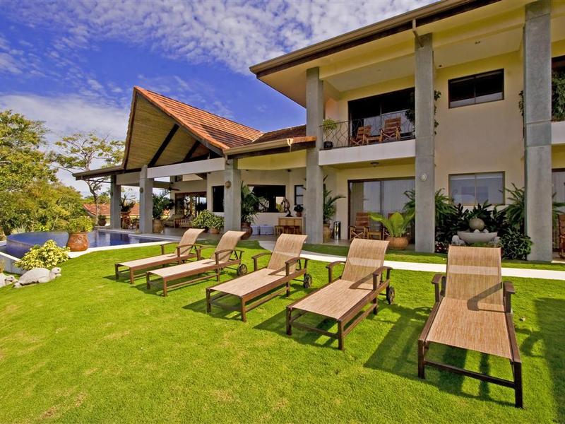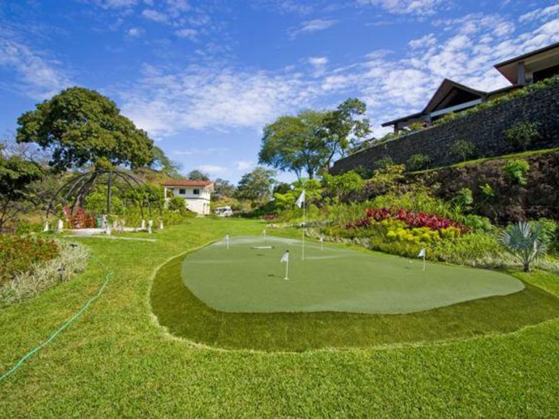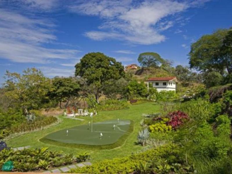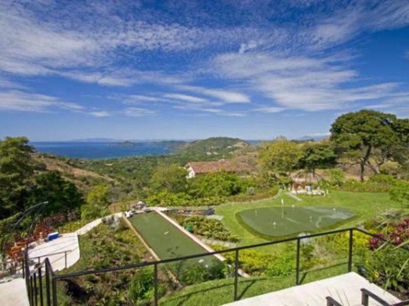 Panoramic ocean view villa surrounded by lush gardens, tree filled monkeys, hundreds of acres, yet minutes to services and the beach. Recently furnished with highly customized and upgraded appointments. Tropical architecture offering high ceilings and spacious open floor plan. Incredible outdoor terrace; infinity pool, lush gardens and large grass area, covered outdoor entertaining. There is a very large and spacious lot below the pool offering; a bocce court, two golf putting greens, gazebo, multiple sitting areas and gardens all overlooking the Pacific Ocean, waves breaking with white water views. All outdoor and sports minded enthusiasts will enjoy these great amenities. Those kicking back, relaxing from their busy back home life style, may find themselves merely lounging by the pool and gardens, taking in the varietal and expansive views.