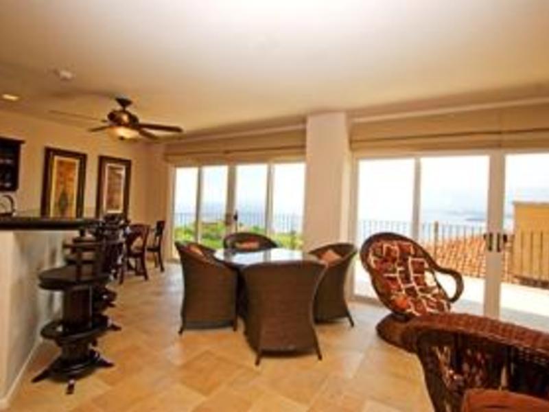 Corona del Mar is a fully equipped luxury condo with the best ocean view in Playa Ocotal Guanacaste. The condo has 4 comfortable bedrooms and sleeps up to 8 guests. The downstairs bedroom has a queen size bed, as well as one of the upstairs bedrooms. The other two upstairs bedrooms have one King Size bed each. The Master bedroom has a private bathroom and walk-in closet.