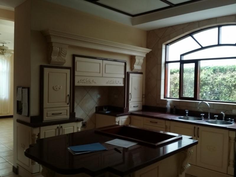 CASA DE LUJO EN VALLE DEL SOL. Two-storey house consisting of: Low level: - Room with dome for greater lighting - Full guest bathroom next to the office - Office with fine furniture, desk, air conditioning and Murano chandelier - Large main dining room - Large main room with two rock cut crystal lamps and gold bath - Informal room with bar area (furniture included) - Full guest bathroom in the informal living room that doubles as a dressing room for the Jacuzzi - Indoor Jacuzzi for up to 10 people whose maintenance is cheaper than a swimming pool - Dining room overlooking the tennis courts - Storage room for care items under the stands - Kitchen with granite countertop, well lit, light colored furniture, instant hot water, food disposer, dishwasher and island (counter) in the center - Food cupboard - Room with full bathroom for domestic service - Large laundry room with large tanks and built-in cache. Ventilated clothesline - Two car garage at the back of the house. The garage is decorated with the same elements as the rest of the house BBQ area with extractor to avoid smoke (this area is connected to the garage by folding doors and becomes a large room for parties) - Garden and planted trees - Street leading to the garage is used to park more cars when there is some activity - Windows with sieve to avoid flies and that there is good ventilation - High ceilings that allow better air circulation Top floor: - Television room - Two bedrooms, with closets - A complete bathroom with a Jacuzzi tub with hydromassage, as well as a shower. This bathroom is shared by the two rooms on the west side of the upper part - A third bedroom with "walking closet" and full bathroom. Toilet with door - Large master bedroom with separate shower and Jacuzzi tub with hydromassage, two sinks, indirect lighting, separate area with door to the toilet and a ladies' vanity - Large “walking closet” with large shoe rack, luggage storage area, large mirror and men's dressing table - Central air conditioning for the entire upper floor "Shut" to throw dirty clothes into the laundry room Further: - In the front and the east side of the house there are gardens - In the front there is a bench for cool afternoons, waiting for school bus and / or visits - Area built in cement and with an iron lid on the outside to leave garbage - “Drive thru” at the front of the house, to facilitate staying closer to the front door, especially on rainy days - Reflectors to illuminate and enhance the house - Cellar under the Jacuzzi - Machine room for the Jacuzzi - Storage under the informal living room bathroom for remains of construction materials - Machine room for the hot water heater and pump to send water to the whole house in case of shortage and the catchment tank has to be used - Catchment tank - Fans in two bedrooms and in both main bathrooms, in the back corridor (BBQ area), informal living room and dining room - Sound diffusion with speakers in different areas of the house, in the lower part - Intercom between rooms - Electric gate at the entrance of the street to the garage - Electric gate in the garage - High wall in the back with electrified razor wire - 24 hour security service - Two gas tanks for the Jacuzzi, duly protected - Dimmers in various places to give warmth to the house - Two telephone lines - Paved area in front with Aditec molds The house will be delivered without curtains, however there are curtains and some curtains that can be used. Residential maintenance fee: 98,000 colones per month.