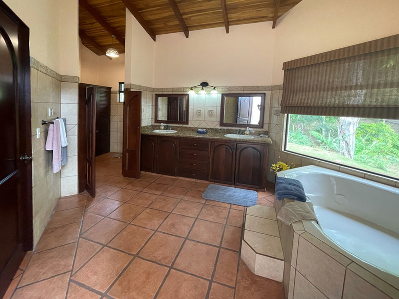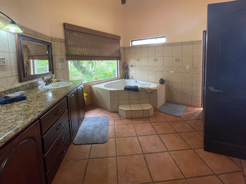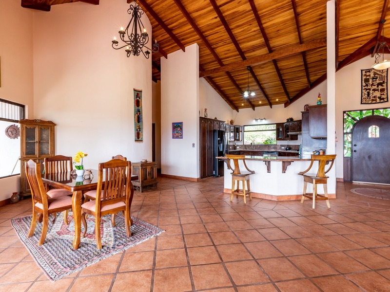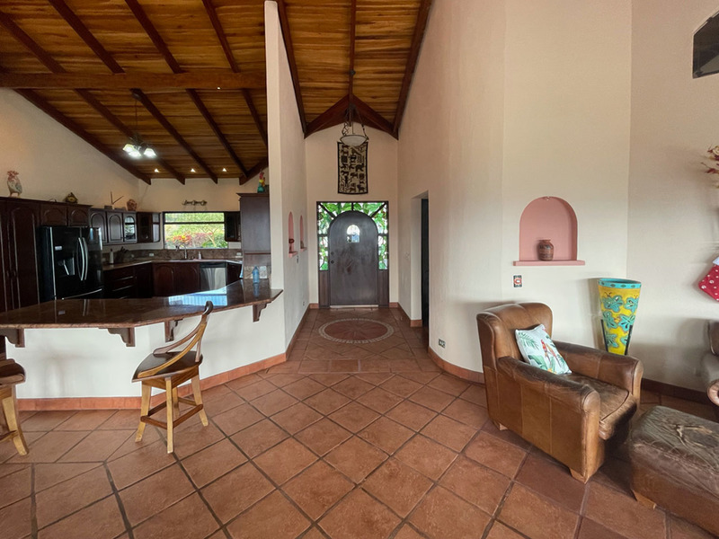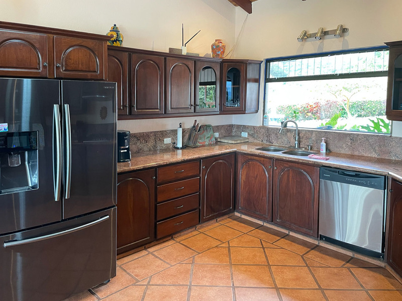 This beautiful Spanish inspired home and Casita is available at a really great price. Located inside a popular gated community, you will enjoy great views and natural beauty rarely found, especially at this price. The kitchen, dining area, and living room area are open concept and very spacious. The kitchen is nicely laid out and features stainless steel appliances and beautiful granite countertops. The bedrooms are spacious as well. The master bedroom has an amazing and large ensuite bathroom which features an outside shower area. The Casita is another great living space with a full kitchen and living room area upstairs and a nice bedroom downstairs. There is a porch area outside of each of the two levels. The feeling of being one with nature comes naturally. There is a large bodega with lots of room for tools. It could even be converted to a maid’s quarters. This property is offered by Coldwell Banker Pura Vida Paradise. Call us now for a showing.