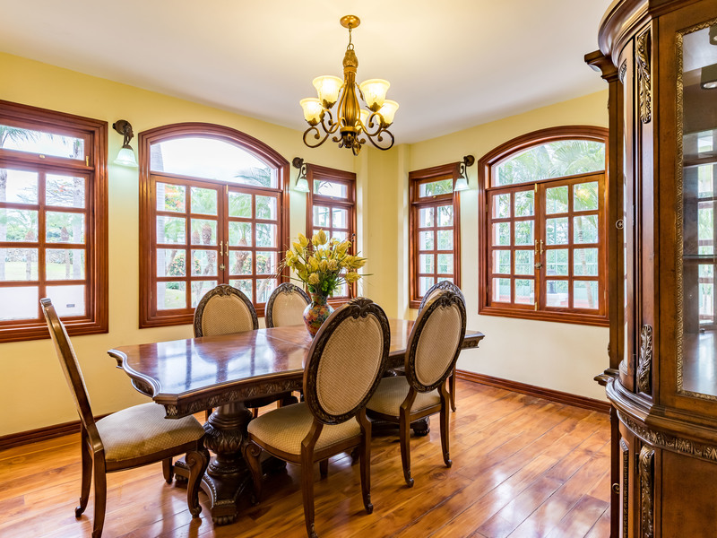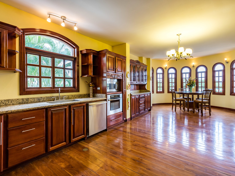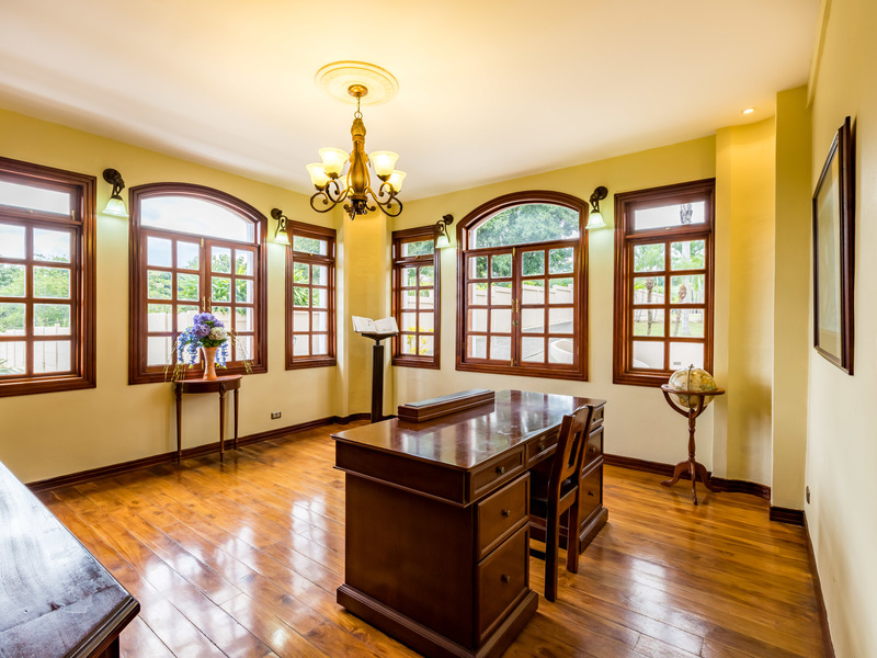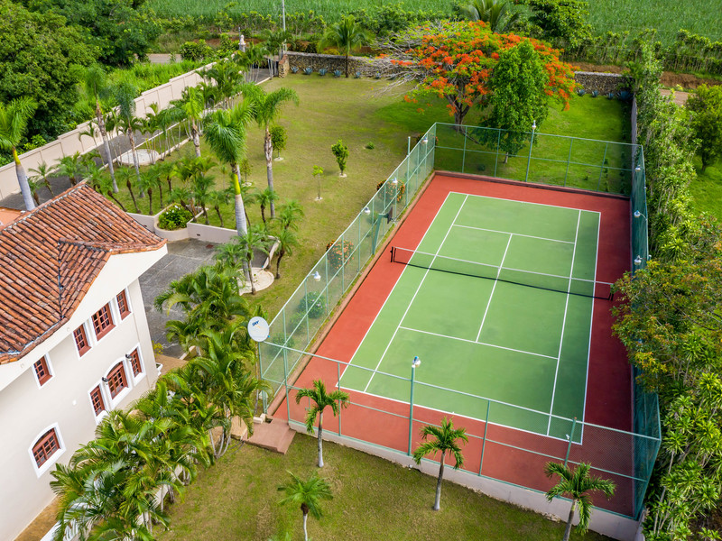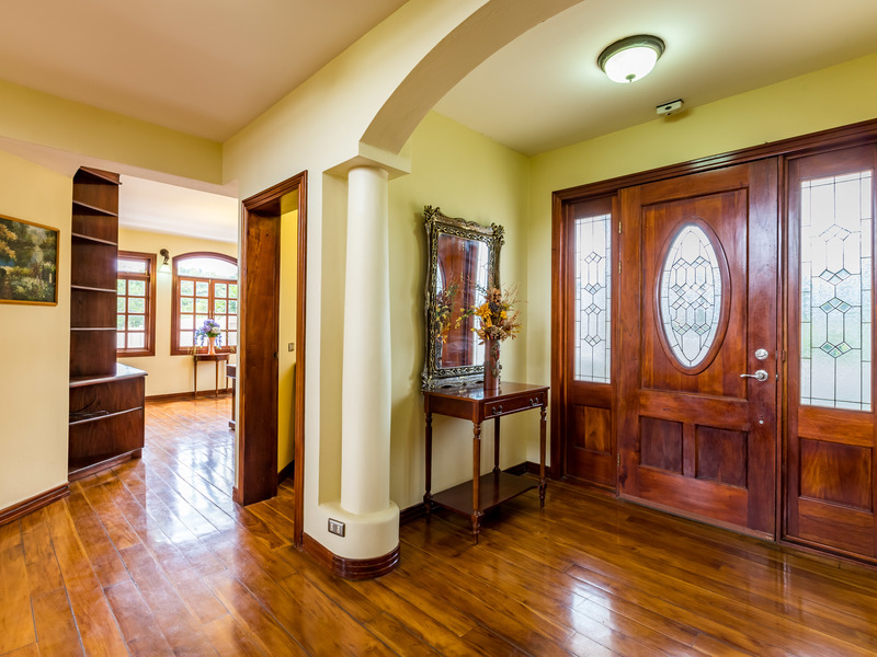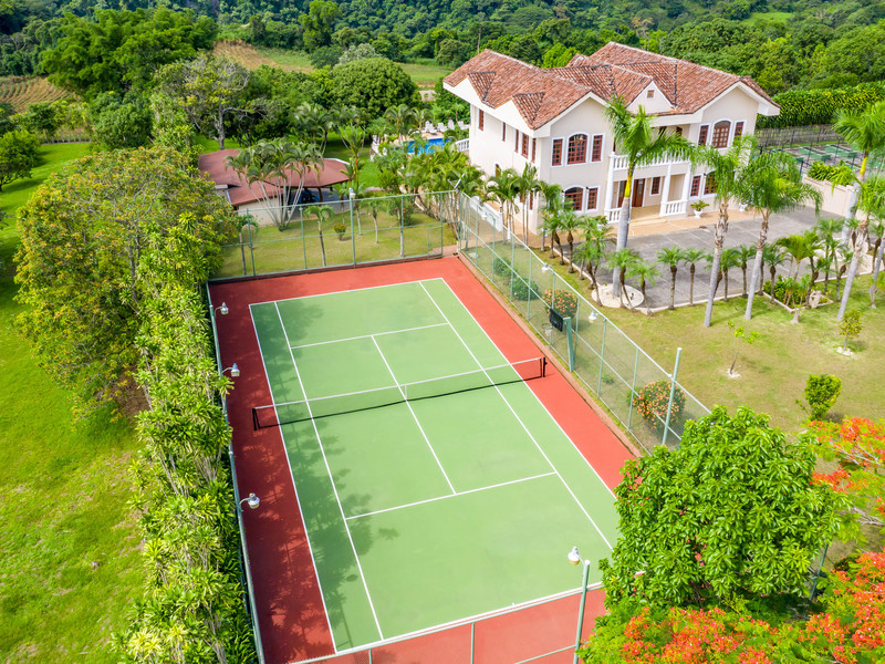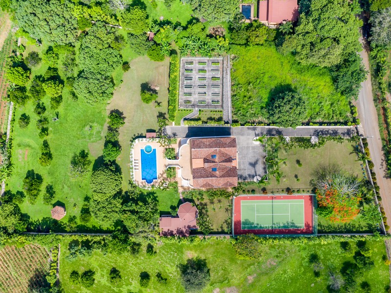 Resort style living, with extensive gardens and grounds, in direct contact with nature. This is a one of a kind of property located in one of the most beautiful areas of Atenas, where you will be able to enjoy home grown vegetables, coffee, mangos, grapefruit, guayaba, oranges, lemons, tangerines, bananas, avocados, etc, all year round. This could easily be the best value for the money in Atenas! Improve your quality of life by growing your own organic food and enjoying fresh clean air, your own pure water source, and one of the best climates in the world. The property has a large variety of palm trees and mature trees of different exotic species. It offers magnificent views towards the valley and mountains. Its 9,400 m2 of land are completely walled and it has an electronic gate for privacy and security. It is an ideal property for pets and if one wishes to have horses. The property offers its own lighted tennis court, 6m x 14m swimming pool, jacuzzi, basketball court, and a lower level area with a bar and lounge for private entertaining. This floor has a full bathroom and guest bedroom. The property has a sizable separate home with two bedrooms a living room two bathrooms and a kitchen which can be convenient for the caretakers or gardeners. A irrigation system is in place and the present caretaker lives on the property. The home is located only 25 minutes from the International airport, and only minutes to the center of Atenas. It’s 30 minutes to the commercial center of the Multi-plaza mall, the Cima Hospital, and many other amenities centrally located in the cities of Escazú and Santa Ana. The house is wheel chair accessible. The layout consists of three floors. On the main level you will find a large living room with access to the huge deck, an ample office/library, oversized kitchen and adjoining dining room. On the second level you have three bedrooms and two bathrooms. The master bath comes with a bathtub and a walk in shower. Balconies open out of the bedrooms to admire the stunning views. There is a laundry area on each level of the house. The whole house has custom crafted wood flooring. Call us today at Coldwell banker Pura Vida Paradise!