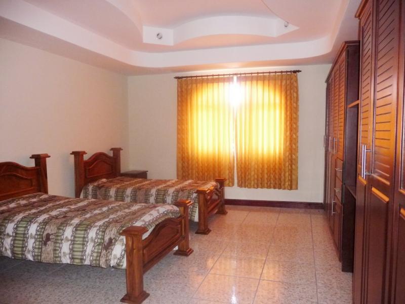 Casa en Venta en Curridabat Located in a private residence with 24/7 security with controlled access, security fee 40,000 colones. First Floor: front terrace at the entrance to the house, large hall, office, guest bathroom, guest bedroom with wooden closet with full bathroom, large living room, spacious dining room (both in separate spaces), large kitchen with wooden furniture with granite top with island with breakfast bar. TV room, very spacious master bedroom with closet and walk-in closet, with full bathroom. Roofed rear terrace connected to the large rear garden, large cellar and large laundry room with laying area, covered garage for 2 vehicles with electric gate, beautiful front garden. Second Floor: study room, 2 large bedrooms with wall-to-wall closet with its full bathroom each. House with good finishes, good height of ceilings, very bright and with an excellent location. Close to schools, shopping centers, public transport and at an excellent price.