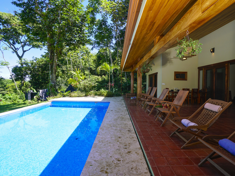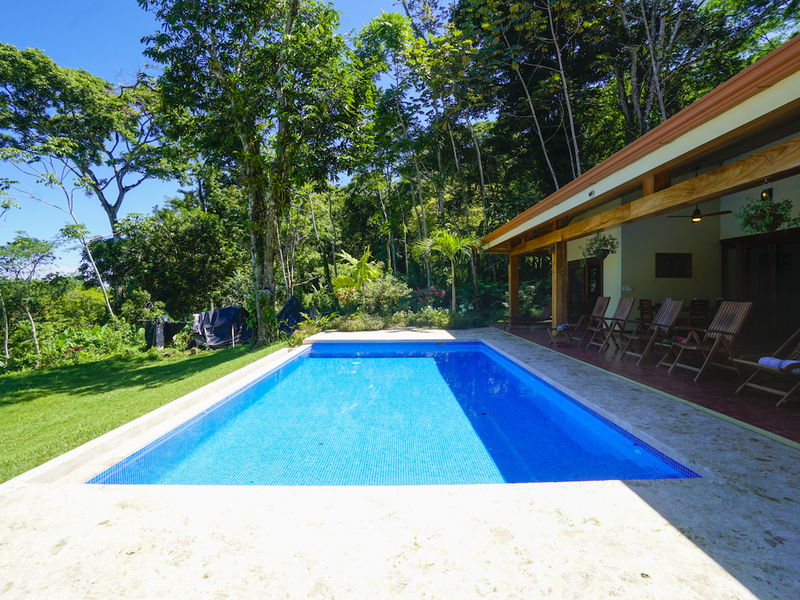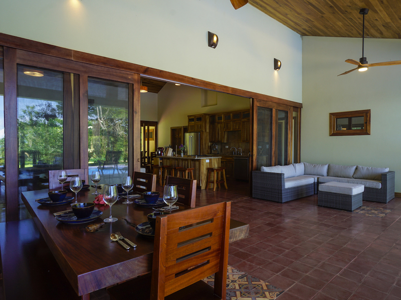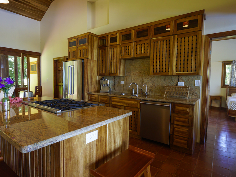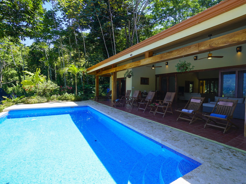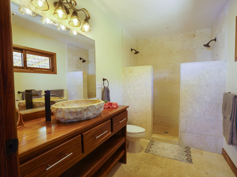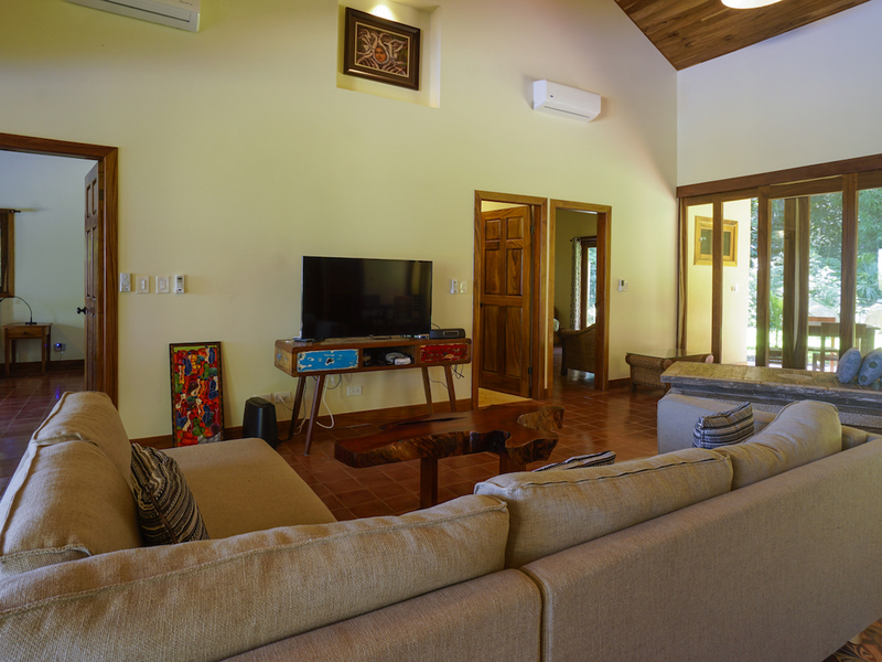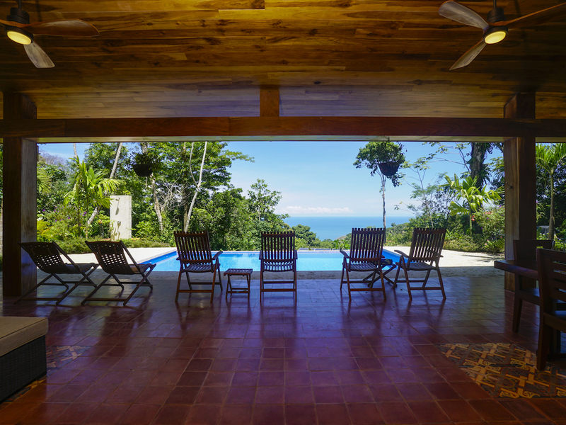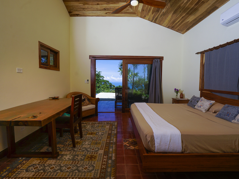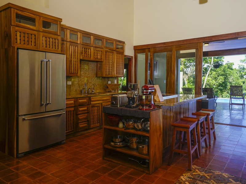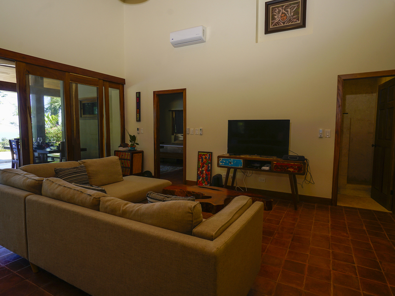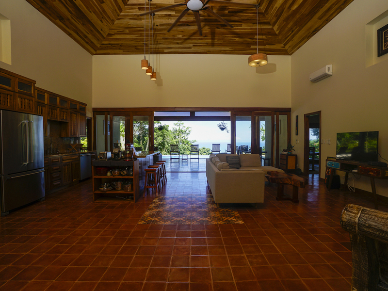 You will find vaulted ceilings in the living room, 11 high efficiency LED ceiling fans, and tempered security glass on all windows and sliding doors throughout the house. This home is perfect to entertaining guests with professional blue star kitchen and beautiful guanacaste wood custom kitchen cabinets. You will find two ocean view master bedrooms and two jungle view bedrooms off to each side of the house. All of which access the main living room that look out over the pool across the jungle to the ocean.