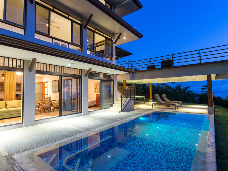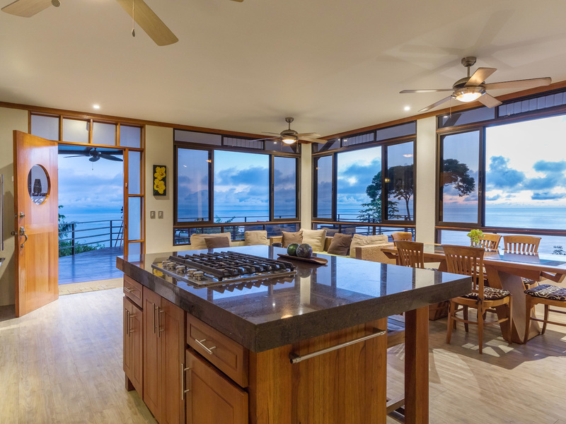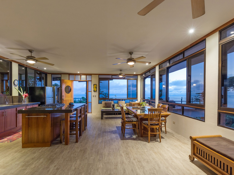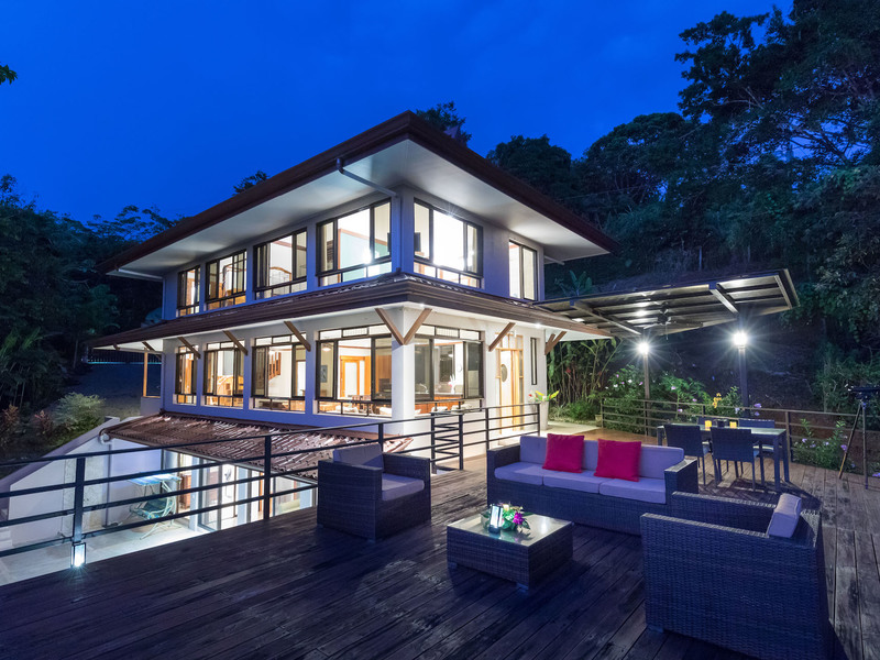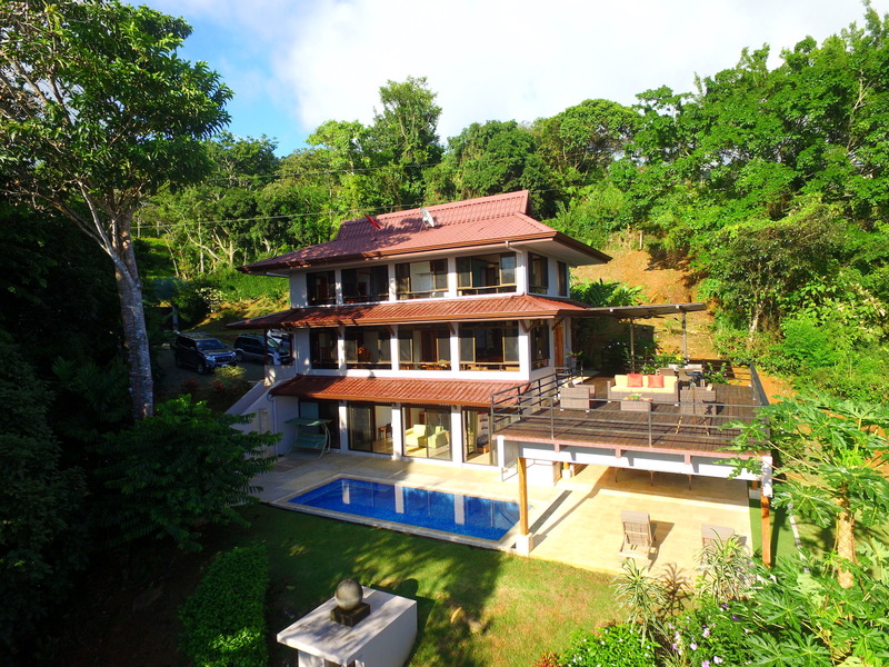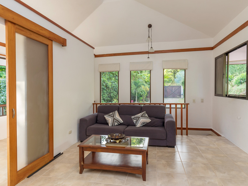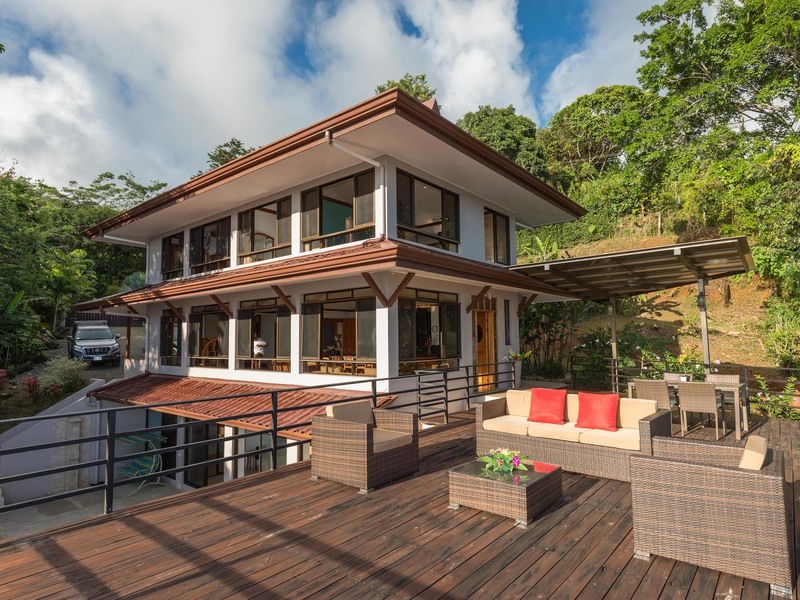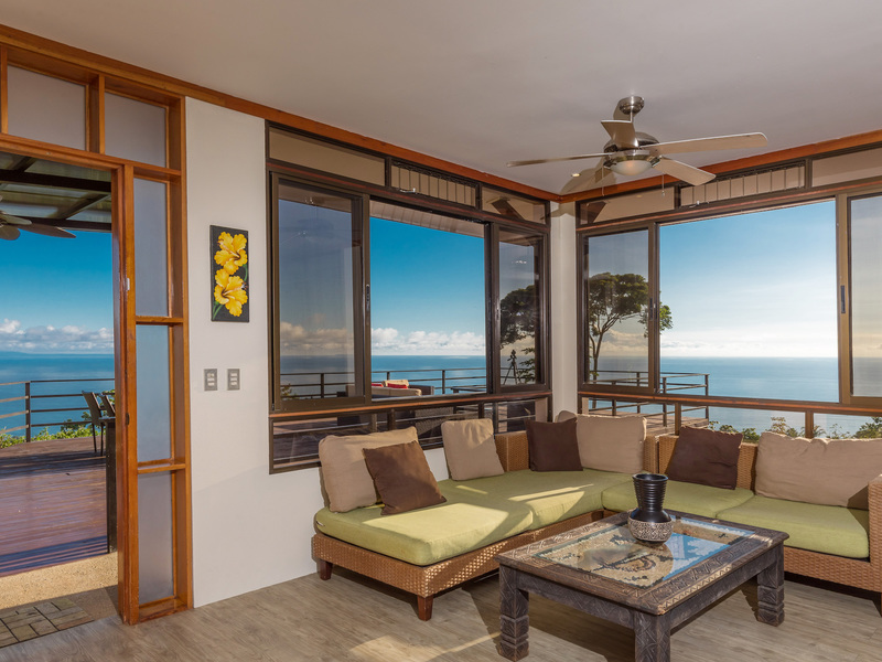 This unique, three-level four bedroom home boasts some of the most dramatic views available in the area. The viewscape is breathtaking and includes rocky headlands, the world-famous Whale's Tail rock reef, Caño Island, the Osa Peninsula and even sunset on the water during the summer months. The elevation is approx 1000 feet above sea level which gives the site a lofty feel, offers more moderate temperatures but still puts you within a five minute drive to the coastal highway. The turn-off point from the coastal highway is about halfway between the center of Uvita and the town of Dominical, making the location not only very desirable but also very convenient. The house itself has been a full time residence but also lends itself to vacation rentals given the bedroom count, generous outdoor living areas, swimming pool and landscaped gardens which invite toucans and monkeys daily. The lower level features an independent two bedroom apartment. The middle or main entry level has an open concept great room (modern, remodeled kitchen with pantry) that takes in the powerful views through large windows on the ocean facing side. The upper level incorporates a reading area, small bedroom suitable for children or an office and an en-suite (remodeled/up-graded) master bedroom on the southern side. The roof and outdoor decking are very sturdy (owner is an engineer), and drainage systems and other important features for the tropics are well built and maintained. The one acre property is fully fenced, has a convenient electric gate and the parking can accommodate up to ten vehicle; for this reason and many others the house is very well suited for entertaining (read: people like the pool and view too). The property is not part of any formal HOA, so there are no obligatory dues or restrictions. The house also has direct access to fiber optic internet service and has a locked storage area and garage - several elements which make for practical usage. A combination of location, views, turnkey (furnishings and appliances included) conveyance, lush gardens, supporting features and charm make this a very attractive option in the current market.