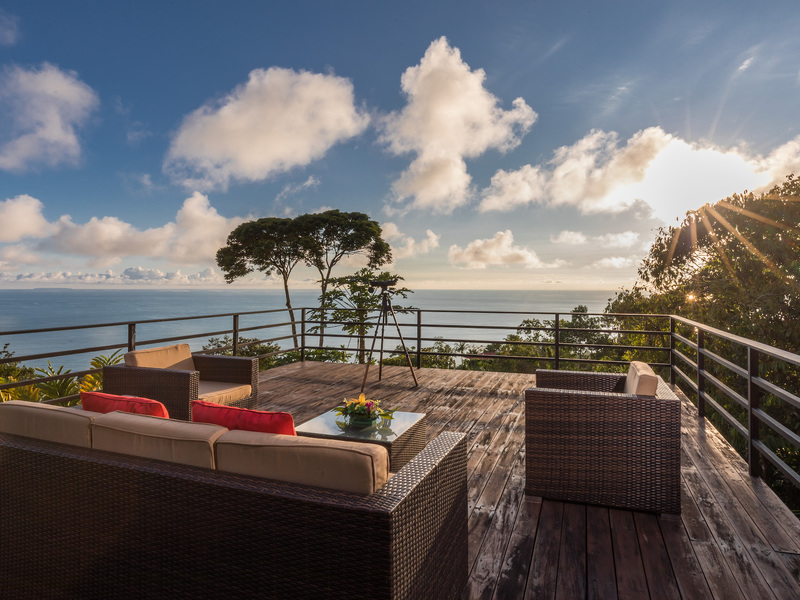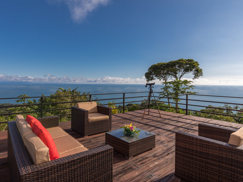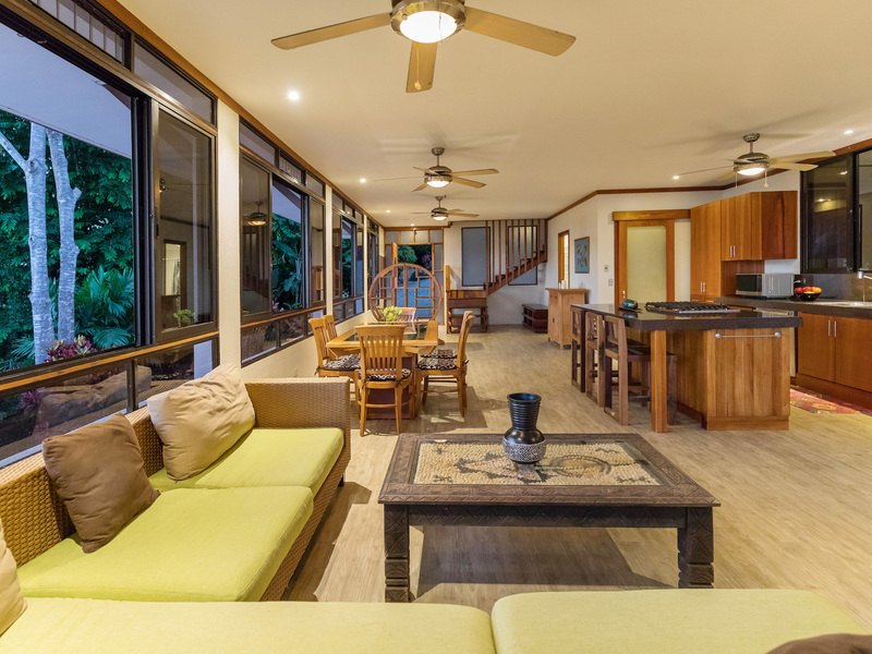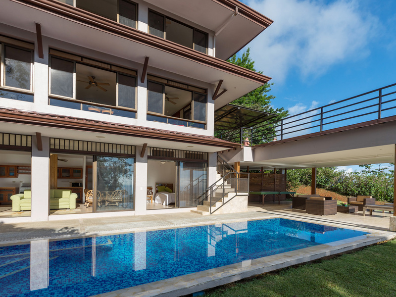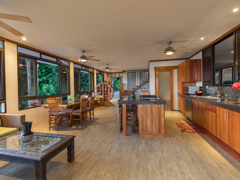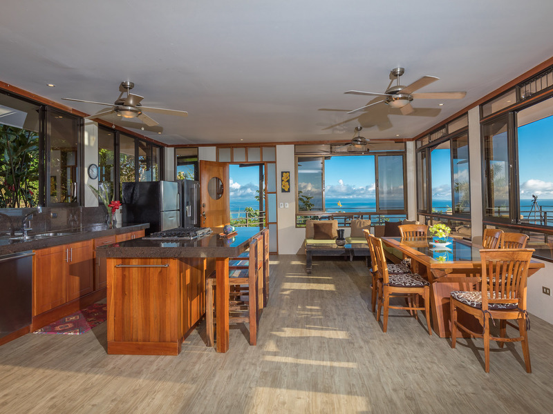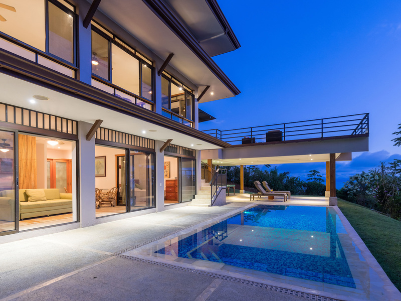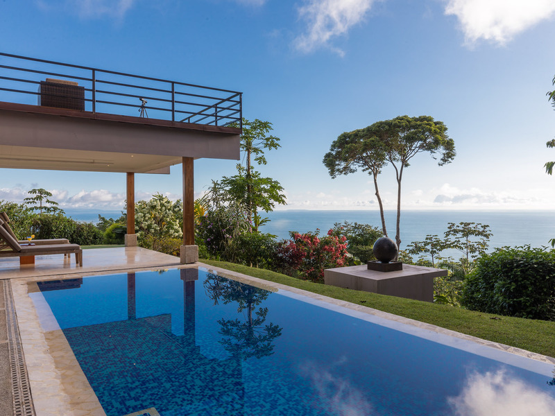 This unique, three-level four bedroom home boasts some of the most dramatic views available in the area. The viewscape is breathtaking and includes rocky headlands, the world-famous Whale's Tail rock reef, Caño Island, the Osa Peninsula and even sunset on the water during the summer months. The elevation is approx 1000 feet above sea level which gives the site a lofty feel, offers more moderate temperatures but still puts you within a five minute drive to the coastal highway. The turn-off point from the coastal highway is about halfway between the center of Uvita and the town of Dominical, making the location not only very desirable but also very convenient. The house itself has been a full time residence but also lends itself to vacation rentals given the bedroom count, generous outdoor living areas, swimming pool and landscaped gardens which invite toucans and monkeys daily. The lower level features an independent two bedroom apartment. The middle or main entry level has an open concept great room (modern, remodeled kitchen with pantry) that takes in the powerful views through large windows on the ocean facing side. The upper level incorporates a reading area, small bedroom suitable for children or an office and an en-suite (remodeled/up-graded) master bedroom on the southern side. The roof and outdoor decking are very sturdy (owner is an engineer), and drainage systems and other important features for the tropics are well built and maintained. The one acre property is fully fenced, has a convenient electric gate and the parking can accommodate up to ten vehicle; for this reason and many others the house is very well suited for entertaining (read: people like the pool and view too). The property is not part of any formal HOA, so there are no obligatory dues or restrictions. The house also has direct access to fiber optic internet service and has a locked storage area and garage - several elements which make for practical usage. A combination of location, views, turnkey (furnishings and appliances included) conveyance, lush gardens, supporting features and charm make this a very attractive option in the current market.