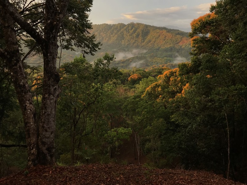 That was several years ago, and this 12-acre property is now for sale in the community of Lagunas just 15 minutes from Dominical and its famous beaches. It is still one of the most beautiful private pieces of land you will see here. From the undeveloped building site, you can watch ocean sunsets almost all year.
