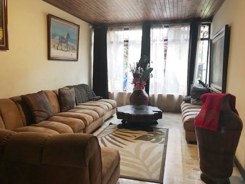 Casa de Dos Plantas con Apartamento Independiente en San Francisco de Dos Ríos por el Parque del Bosque. First floor: hall, large dining room, full kitchen with wooden furniture and breakfast bar, large cupboard, backyard, battery room, covered garage for 1 vehicle, one more inside the property in open space. Second floor: 3 bedrooms with closet and bathroom, an office or fourth bedroom. Nice side and front garden area. Description of the two-storey apartment to rent and generate income: First floor: living room, kitchen with furniture, patio, battery area, bathroom. Second floor: TV room and bedroom with closet. It would generate a monthly income of 250,000 colones per month. The house is on the corner and in a great location