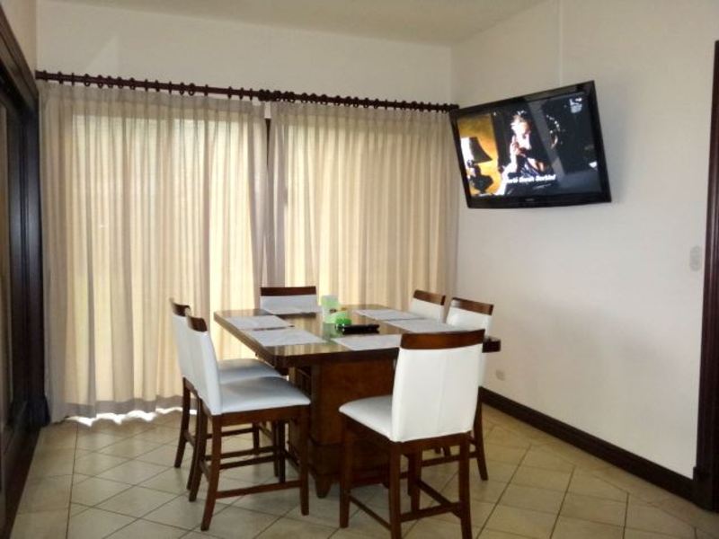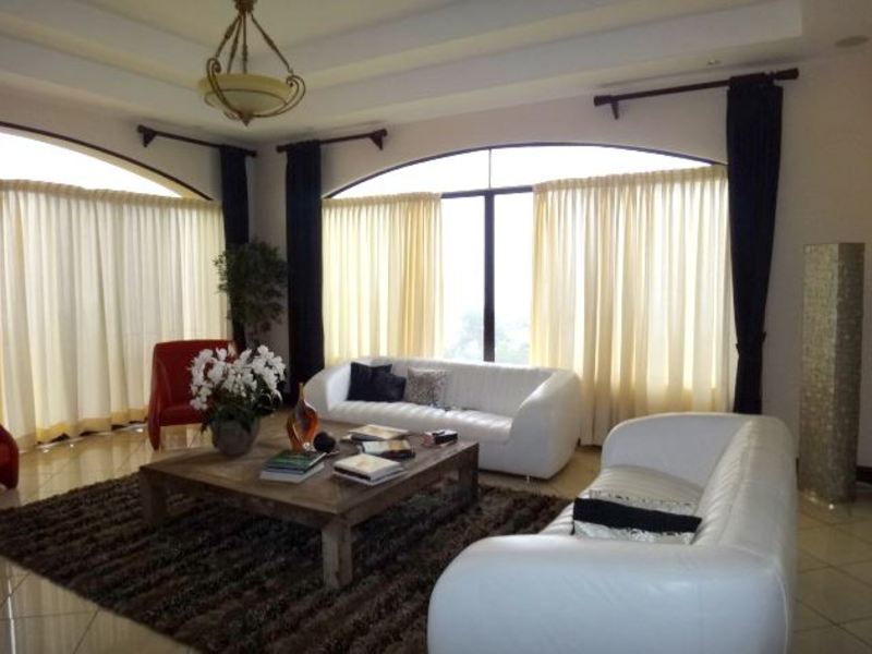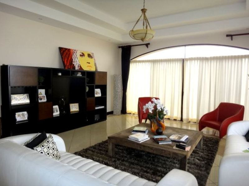 Spacious home for sale in prestigious gated community in Escazú. This great house has a total of 1,030 m2 and it's for sale for $900,000. Also, the house is fully furnished, with imported furniture, paintings, and appliances of high-quality picked specially by the owners. There are several rooms which include a great masters bedroom, with a 42' flat screen, walk-in closet, and a nice jacuzzi in the bathroom. There are 2 large additional bedrooms. There´s also a spacious office that can be turned into a bedroom as well. The entertainment room includes a 52' flat screen and a great surround system. You can also find a very large dining room, with plenty of space for all of your family and guests. It also has a gourmet kitchen with high-quality appliances including a 42' flat screen and a beverage center. Very importantly, it has an amazing, unobstructed view of Escazú and Santa Ana which can be seen from several rooms and the terrace and backyard, where you can also find a BBQ area. The house is pet-friendly and has more great qualities such as hard-wood floors, high ceilings, and many windows which makes it very bright. Additionally, the gated community includes tennis courts and 24 hour security. Come and enjoy this great home! ALSO FOR RENT... Casa a la venta o en alquiler en prestigioso residencial en Escazú. Esta gran casa cuenta con un total de 1.030 m2 y está a la venta por $900.000. Además, la casa está completamente amueblada, con muebles importados, pinturas, y electrodomésticos de alta calidad, elegidos especialmente por sus dueños. Hay varias habitaciones en las que incluyen un gran dormitorio principal, con una pantalla plana de 42 ', walk-in closet y un buen jacuzzi en el baño; y 2 grandes dormitorios adicionales. También hay una amplia oficina que se puede convertir en un dormitorio de igual forma. La sala de entretenimiento incluye una pantalla plana de 52' y un sistema de sonido de alta calidad. Además contiene un comedor muy grande, con mucho espacio para toda su familia e invitados. Cuenta con una cocina gourmet con electrodomésticos de alta calidad, incluyendo una pantalla plana de 42' y un centro de bebidas. Muy importante, tiene una vista sin obstrucciones increíble de Escazú y Santa Ana, que se puede desde varias habitaciones, la terraza y el patio trasero, donde también se puede encontrar una zona de barbacoa. La casa acepta mascotas y cuenta con más cualidades tales como pisos de madera dura, techos altos y muchas ventanas que hace que sea muy alumbrada. Además, la comunidad cerrada incluye pistas de tenis y seguridad 24 horas. ¡Ven y disfruta de esta gran casa!