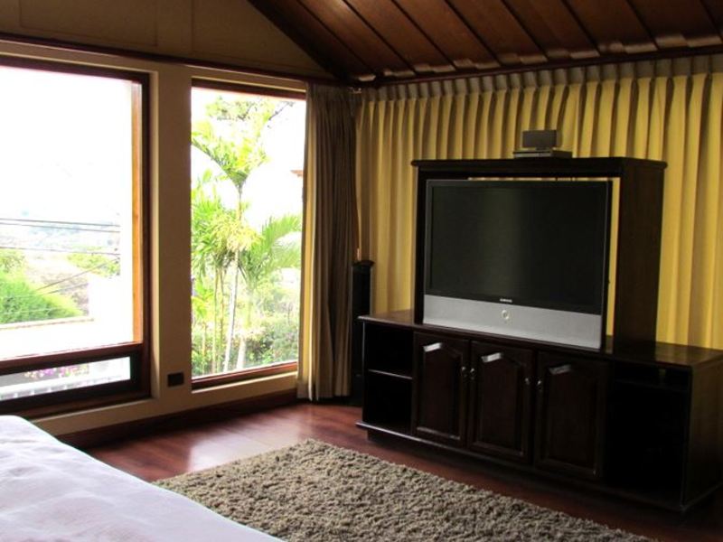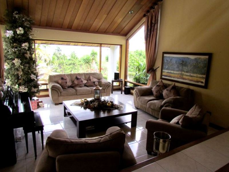 Great house for sale in Escazú with convenient location and city views. This 2 story house is enlisted at $585,000 and has a total lot size of 1,636 sq meters with 550 sq meters of construction. This independent house is very safe and includes 4 spacious bedrooms and 3.5 bathrooms. The amazing city views can be seen from most of the rooms in the house, where even the National Stadium can be seen. The house also has a nice and comfortable kitchen and a spacious living room and TV room. Outside, you can enjoy the nice backyard, where you can find many green areas and a nice terrace where you can relax while sunbathing with a great view. Very importantly, it's great location is due to the fact that it's near several business and commercial centers such as La Paco, Multiplaza, Avenida Escazú, Country Club, and CIMA Hospital. Other features this house includes are maid's bedroom and bathroom, high ceilings, and a remarkable sculpture on the entrance. DON'T MISS THIS OPPORTUNITY!