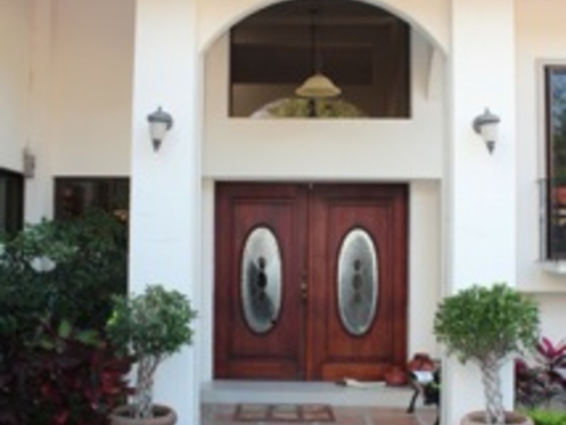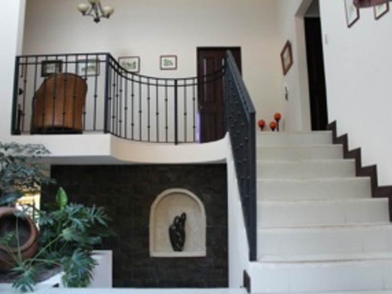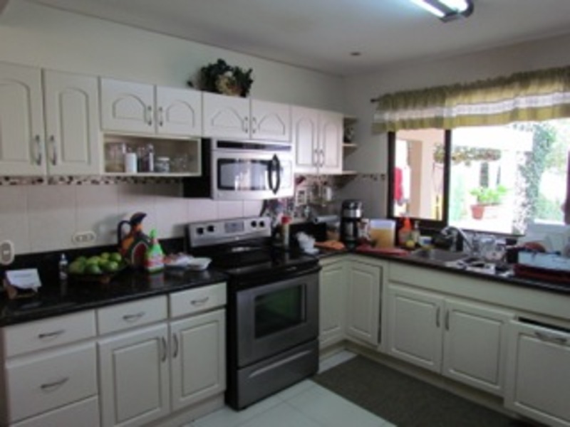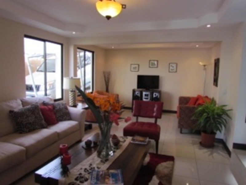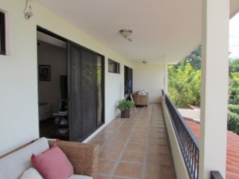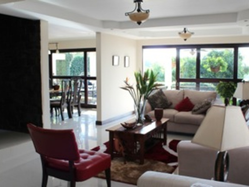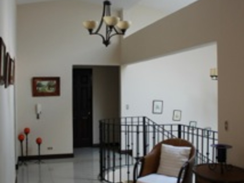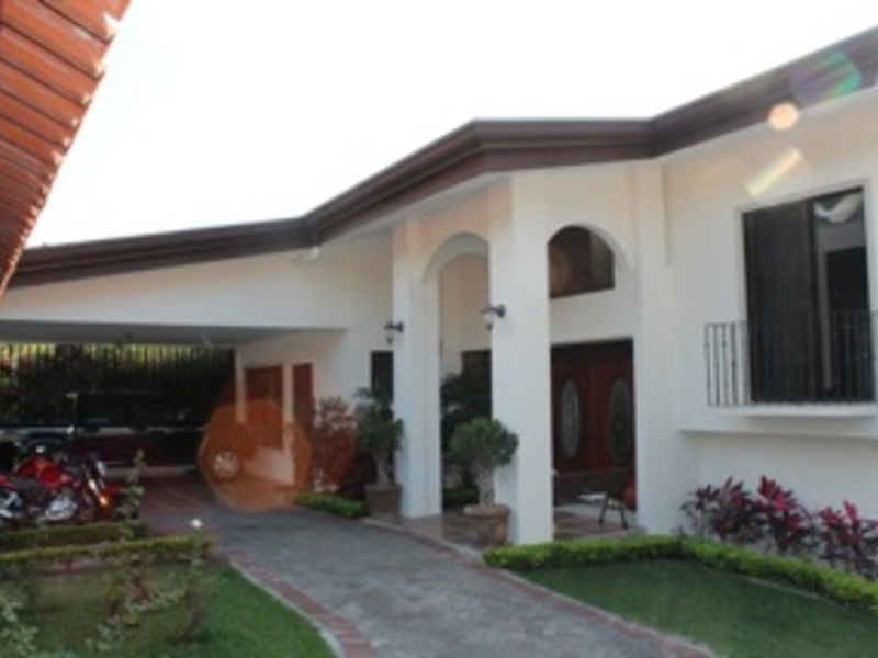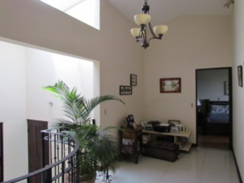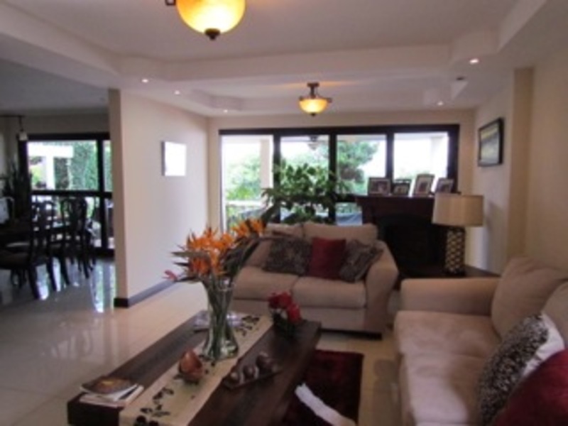 4 Bedrooms Single Family Home For Sale in Guachipelin of Escazu. This home has 2 levels, 0.19 acre (774 m2) of land and 3,487.5 sqf (324 m2) of construction; a garage for 2 cars and space for another 6 in the property; a nice terrace, ample backyard, a balcony and porch. Three bedrooms share a balcony with great views of the mountains and also Santa Ana Valley and its sun sets; 1 office with air conditioning and an independent entrance; 2 living rooms with large windows, TV room, formal dining room, kitchen with granite top, breakfast nook, 3 ½ baths and coffered ceilings. Beautiful gardens with fruit trees and large patio with multipurpose court. Security 12/7 and security alarm. Newly remodeled, porcelain floor.