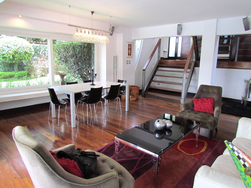 BARGAIN!! Independent 3 Bedroom House with Guesthouse and Pool for Sale in Escazú. Good Opportunity! Ideally located in the renowned residential area called Laureles in Escazú, this contemporary home has easy access to Mutliplaza, all the restaurants and shops of Escazú and Route 27. The house is surrounded by a beautiful garden, has a great size heated pool, a spacious storage area and a second house that can be used as a game room, music studio (is totally soundproofed) or a guesthouse. Inside the main house, there is a living room/dining room that leads to the terrace. The kitchen is separate but can be opened from the living room. On the second floor, the master bedroom has its own bathroom with Jacuzzi and bidet, and walk-in closet. On the upper floor, there are two other bedrooms with their own private bathrooms. The maid’s quarter is ample, with independent access for more privacy. The entire house has almond floors and air conditioning. All space is very bright thanks to all the double glazed windows. Entirely remodeled in 2010, this house follows the latest contemporary trends with an elegant mix of wood, concrete, and metal. Motivated Seller, price to sell, Fire sale!!! Call us now to visit your future home.