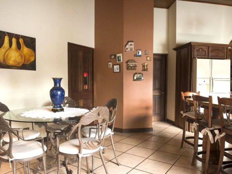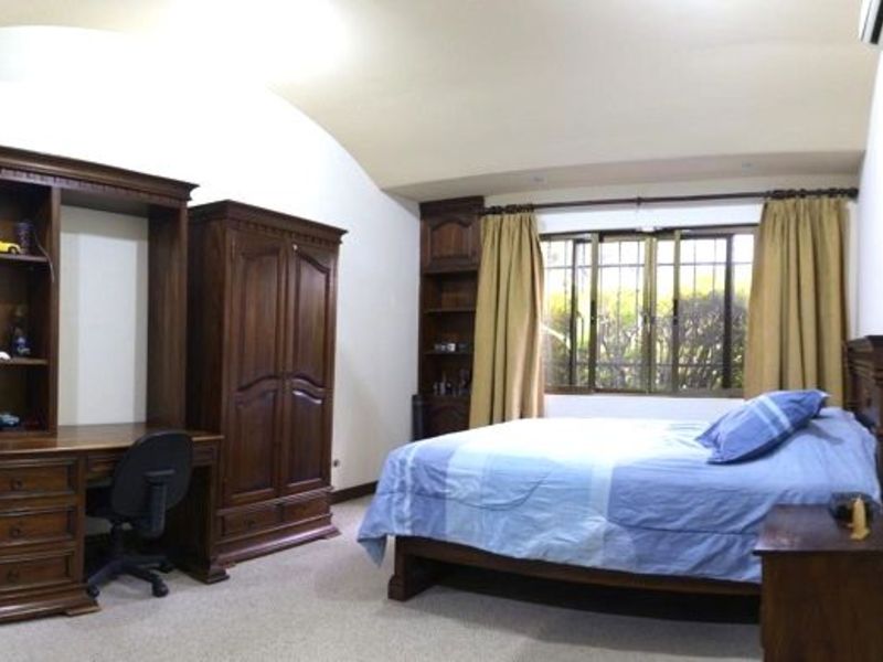 Hermosa casa de dos niveles, a tan solo minutos de las tiendas, el Country club, centros comerciales, a 15 minutos del centro de San José y a 25 minutos del aeropuerto internacional. Esta casa tiene 392 metros cuadrados de construcción y 496 metros cuadrados de terreno. Cuenta con sala de estar y comedor independiente, amplia cocina abierta con sobres de granito y muebles de madera. También cuenta con jardín, terraza con zona de barbacoa, area de lavandería, dormitorio de servicio con baño, oficina, sala de TV, cuarto de invitados o sala de música con aire acondicionado, tambien tiene bodega y estacionamiento techado para 2 autos. Además, cuenta con estacionamientos en la propiedad para más vehículos. La casa tiene 4 dormitorios (uno en el primer piso y dos con aire acondicionado), 3 baños (uno en el segundo piso). Espacioso dormitorio principal con amplio walk-in closet, baño principal con lavabo, ducha y tina. La casa adicionalmente tiene puerta de entrada electrónica, excelente seguridad con cámaras, cerca eléctrica y tapia perimetral; también tiene tratamiento de aguas residuales, drenaje automático, tanque de captacion de agua con bomba, entre otros.