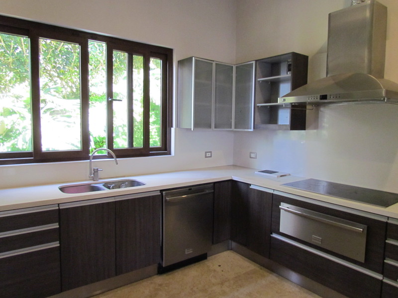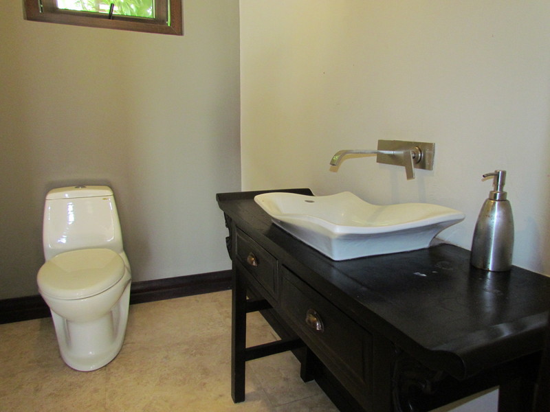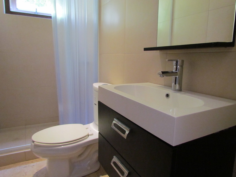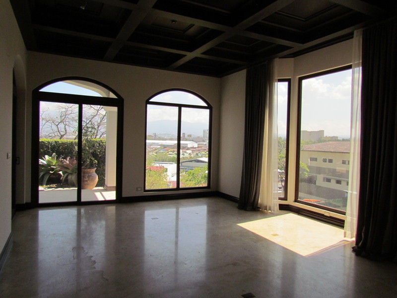 The second level consists of 4 generously sized full bedroom suites, each with its own bath, and a comfortable TV/family room. The master suite has a very large, double height walk-in closet, a great bathroom that includes a long natural stone vanity with lots of storage below and a double sized shower. It also includes a private terrace with great views of the Escazu mountains in the distance.