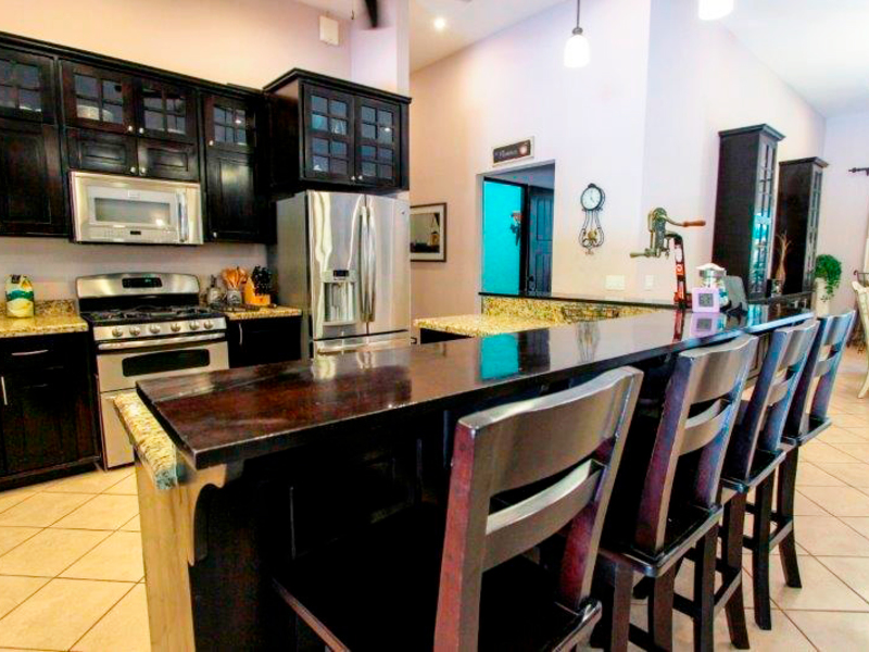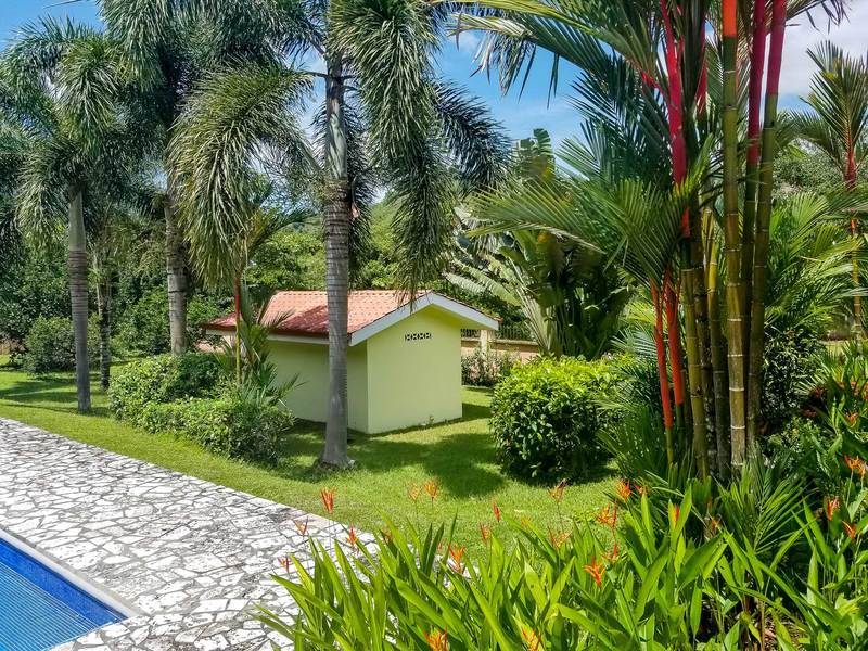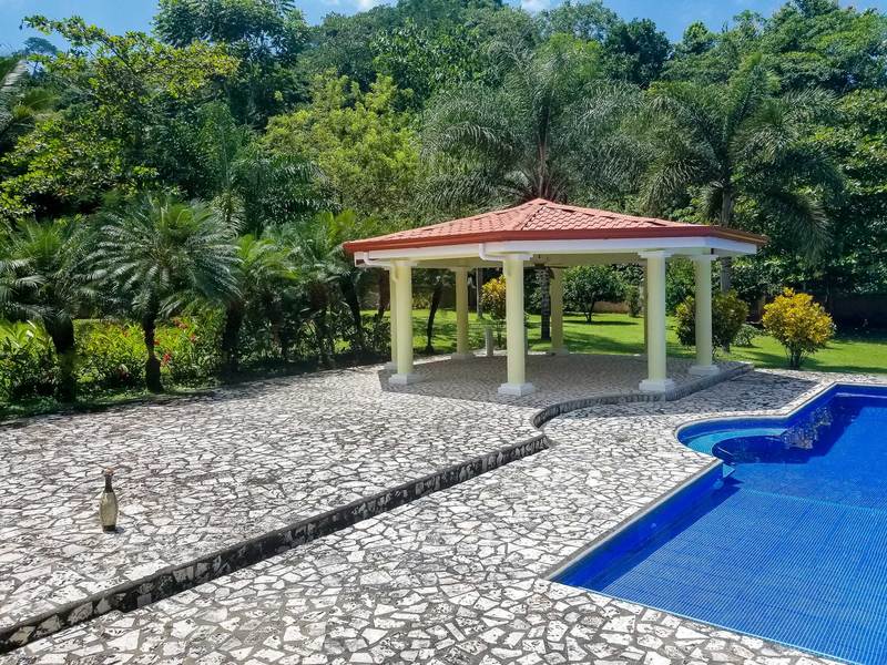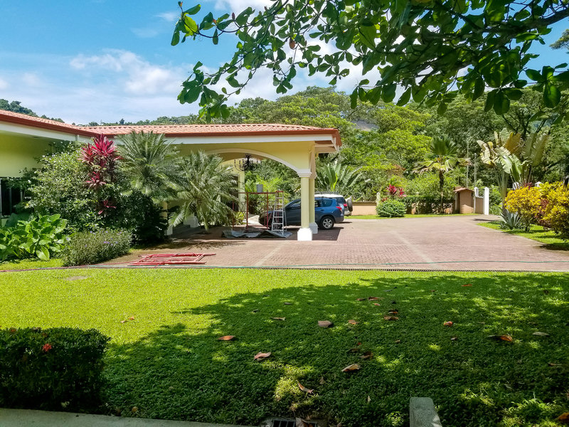 Private Estate Home With Guest Apartment This beautiful four bedroom home is located in Moon Valley, an exclusive community located in between Herradura and Jaco Beach. Custom built with master suite that features a walk in closet and unique master bath that includes a jacuzzi bathtub and a separate shower. Open floor plan with spacious living and dining areas and gourmet kitchen fully equipped with top of the line appliances, granite counter tops, custom cabinetry and sit down breakfast bar. Big Lot with over 1.25 acres of tropically landscaped grounds surrounded by mountains, nature and wildlife. Yard area includes covered terrace, large swimming pool, rancho and a backyard with plenty of room to expand. Garage great for cars or storage area. Property includes a one bedroom guest house with bath perfect for live in help or rental income.