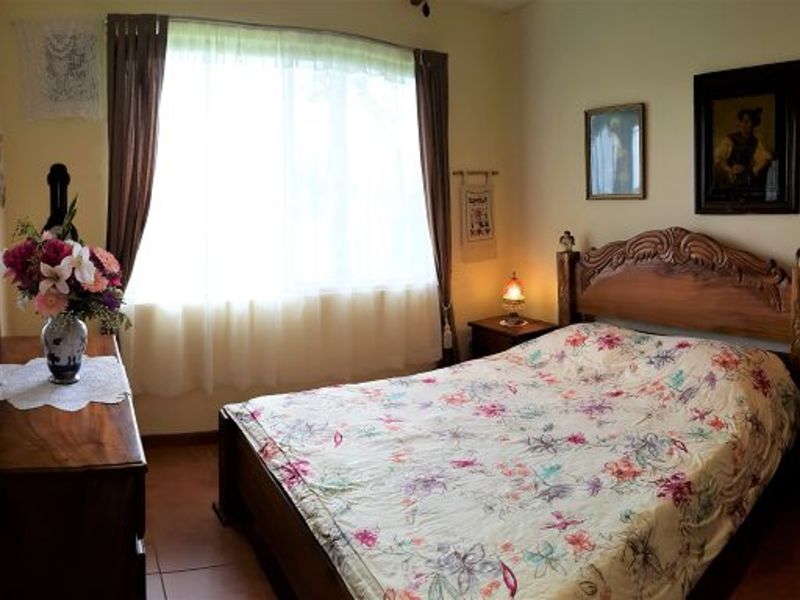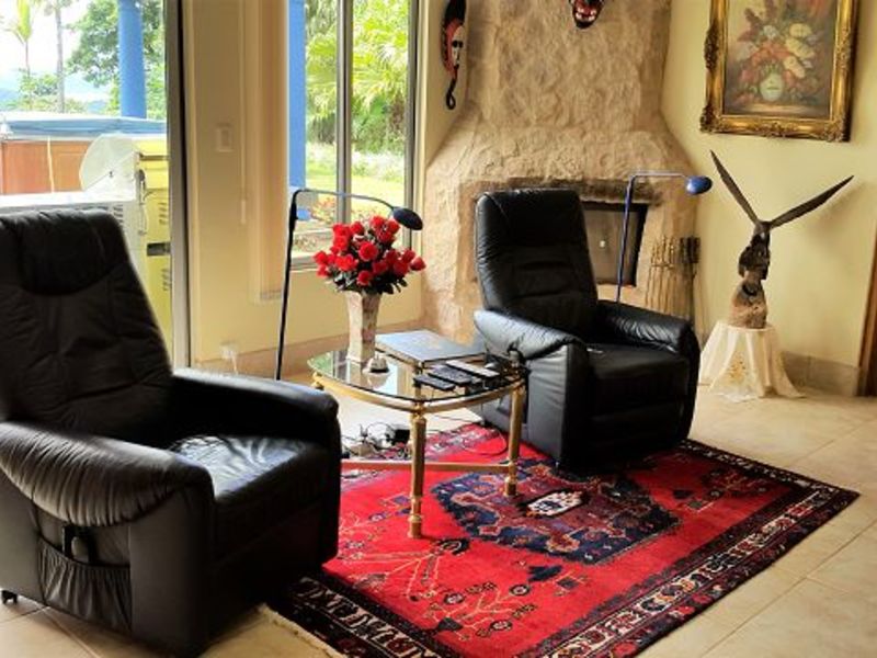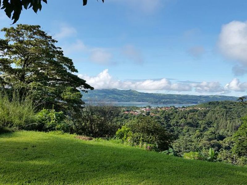 Beautiful home with sea panorama. Just 5 minutes away from the center of Nuevo Arenal, this home offers a house with a bungalow. Four bedrooms, three bathrooms, living room, kitchen, open fire place, storage room, space for parking up to four cars. Magnificent view of the lake, forest, hills and breathtaking sunsets.