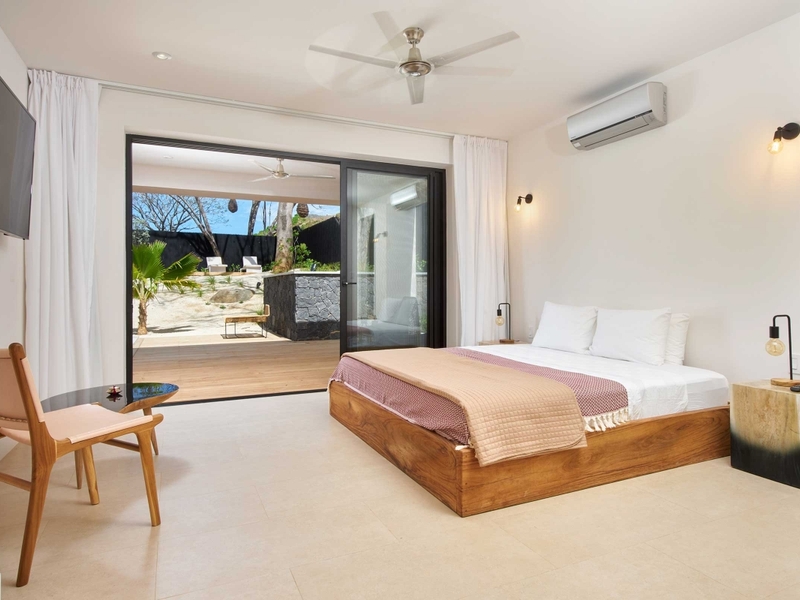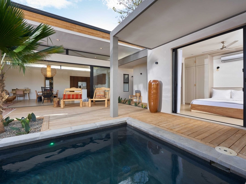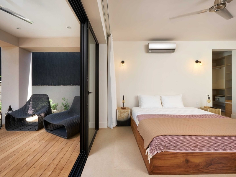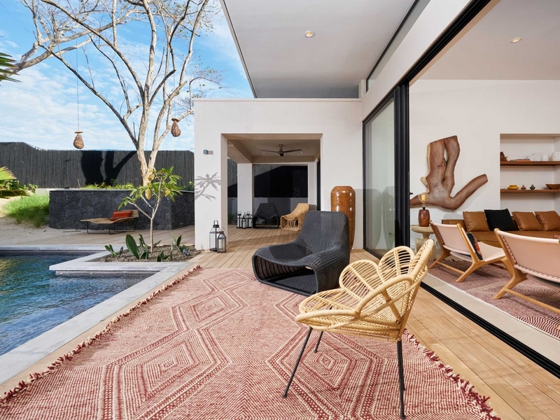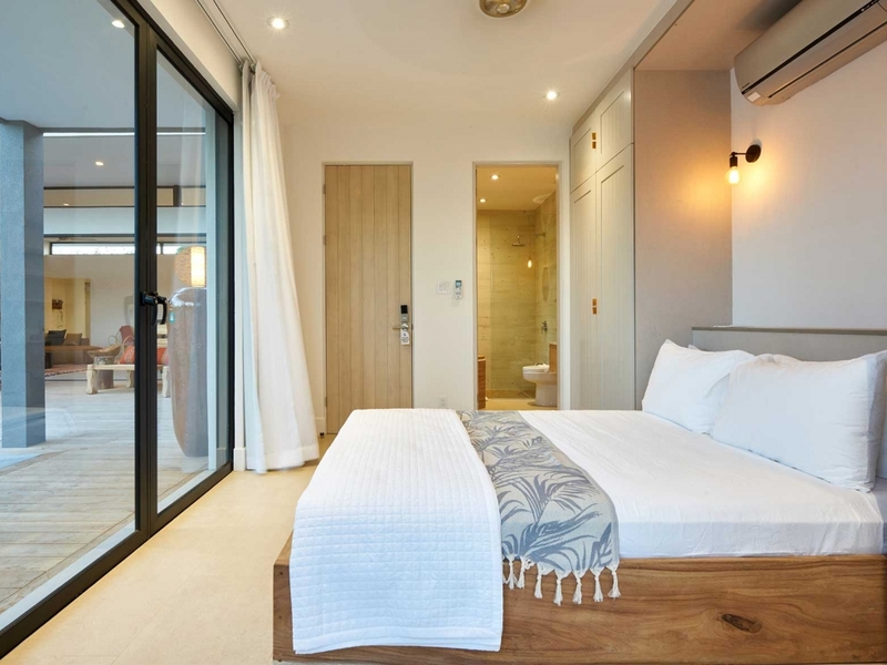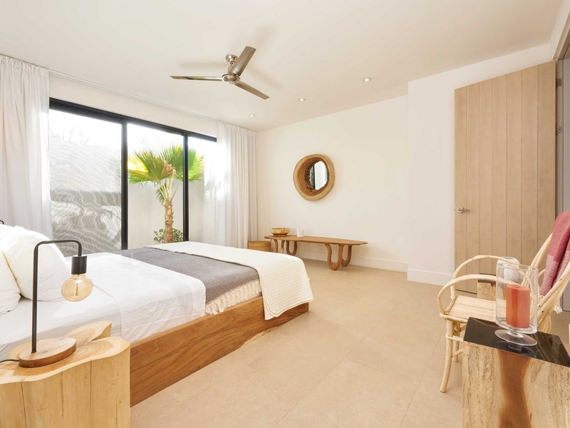 Metisse is a 4 bedrrom, 4 bathroom luxury home that offers offers a comfortable space and privacy for 10 people. Both master bedrooms has a private en suite bathroom, a walk-in closet and a king-size bed. The guest room with two bunk beds is great for children and has access to another bathroom and separate half bath. The third bedroom with queen size bed and private bath is set up as a separate pool guest house with direct access to and view on the pool.