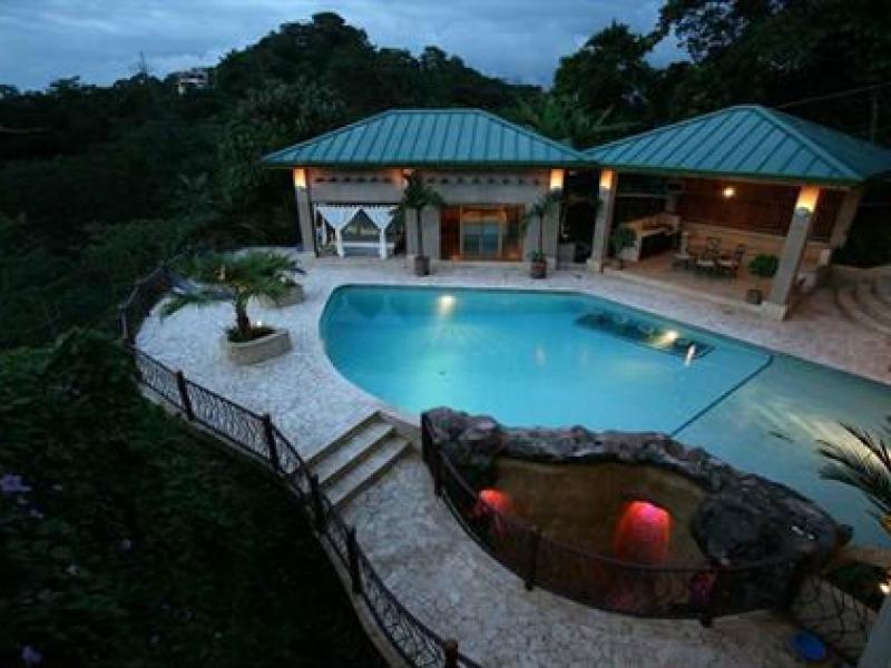 The Casa Caballo del Mar is a spacious, private luxury home located in a gated development called Rancho Manuel Antonio, in a quiet residential area of Manuel Antonio. The home measures over 9000 square feet, including terraces, and blends well into the surrounding rainforest. It was constructed of only high-quality materials and finishes, from teak doors to almond floors. The main house consists of 3 bedrooms and 4 bathrooms, and there is a separate 1 bedroom / 1 bathroom guest house. The beautiful beach-entry pool also has a pool rancho / barbecue area.