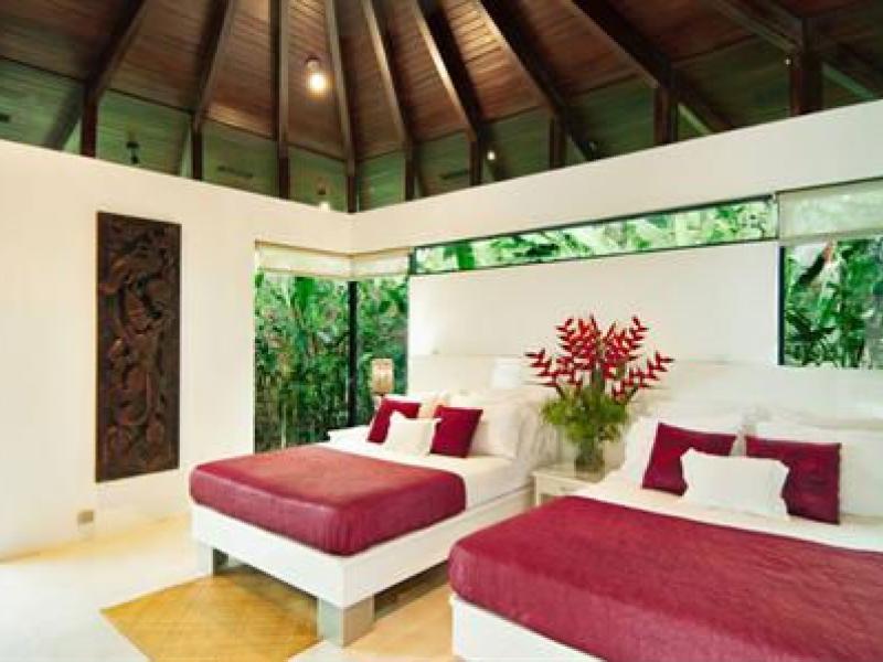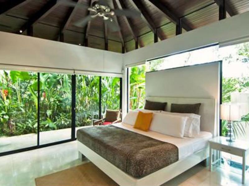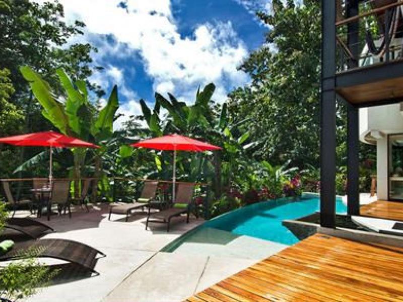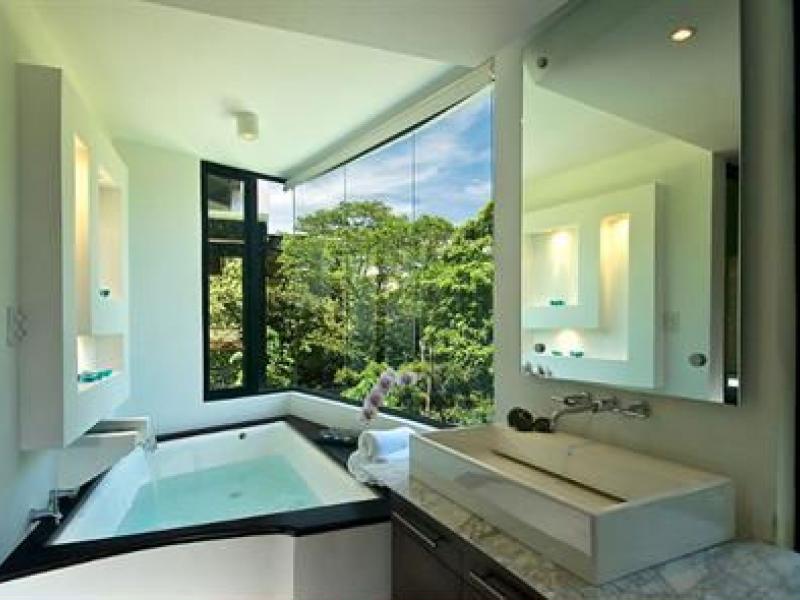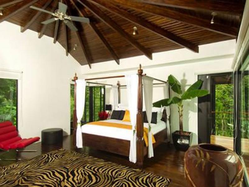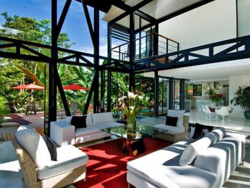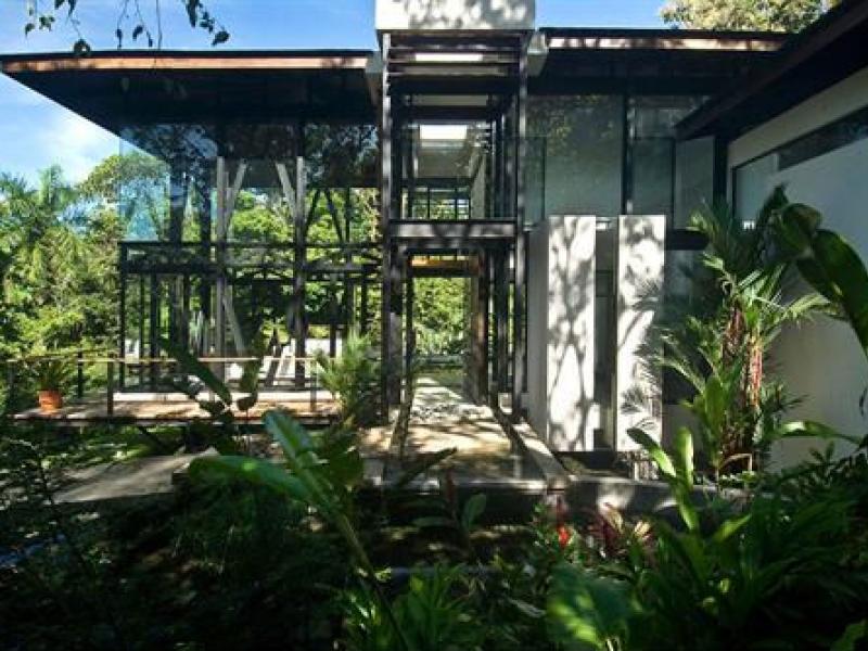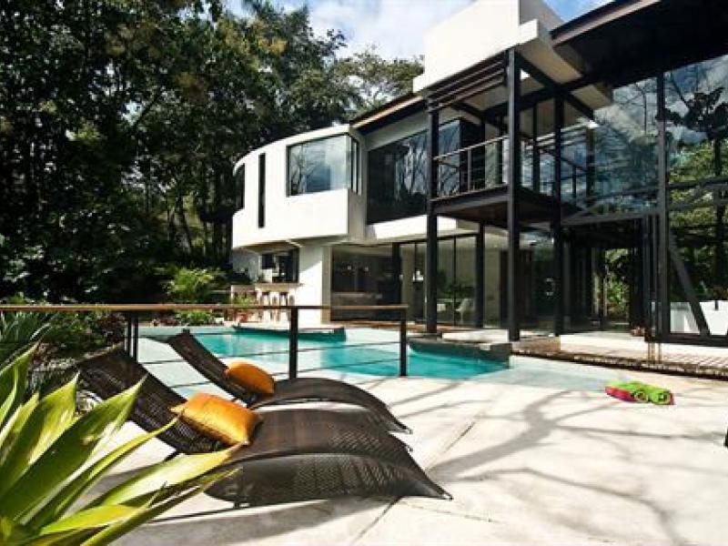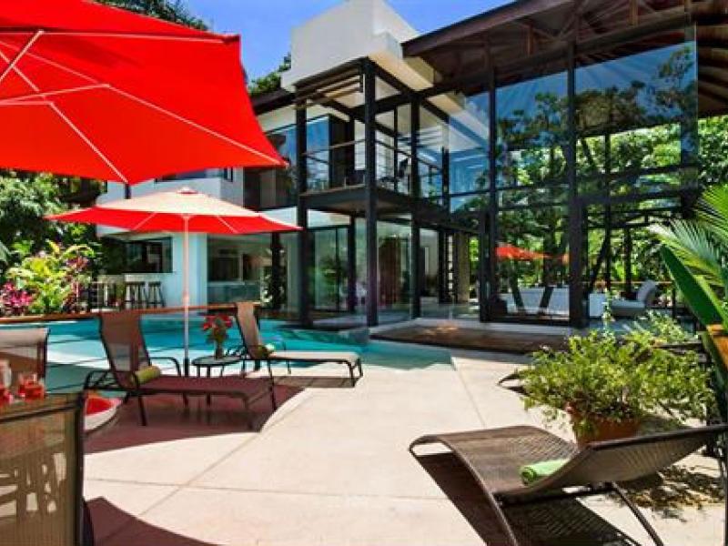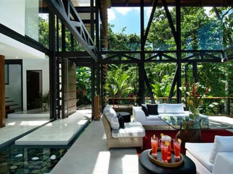 The Casa Romantica is an architect's dream come true. The property is truly a work of art. Hidden from the road, the home is set in Manuel Antonio's thriving rainforest, and ensconced in nature. Every feature of the home and property have been impeccably designed, and are of the highest quality. The appeal is modern tropical, features 20 foot walls of glass, and an open floor plan. A cascading water feature greets everyone who enters, and runs through the home to the pool on the other side. Within the home are a number of aesthetic architectural features, as well--including lighting alcoves, an inside atrium, vaulted teak ceilings, over 300 inset lights, a rainwater recycling system, and even an oversized jacuzzi tub in the master bedroom.