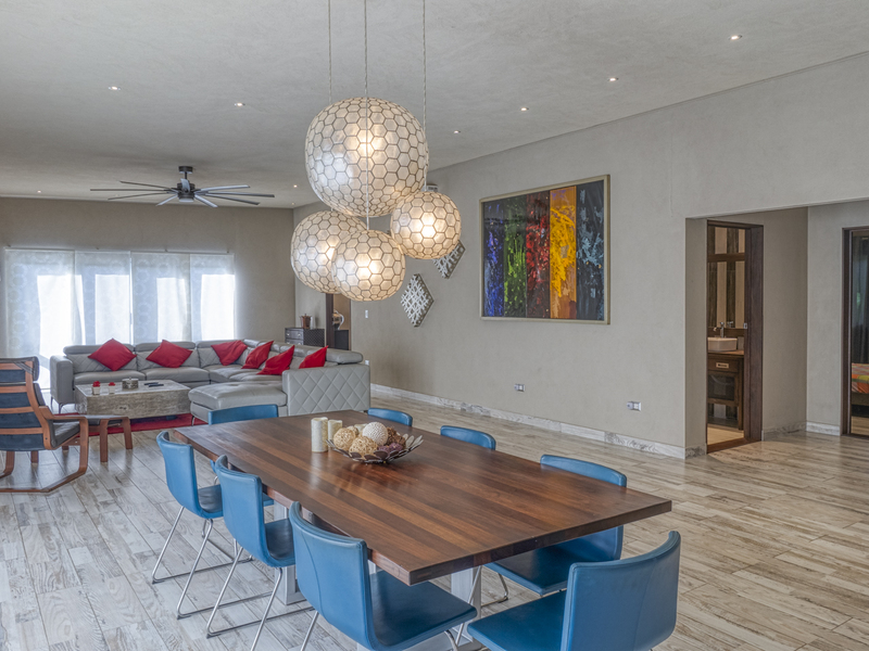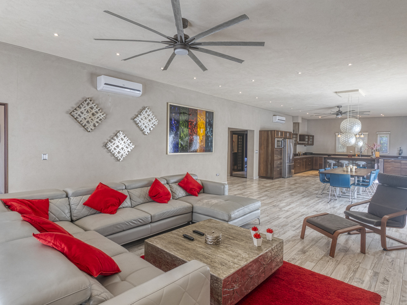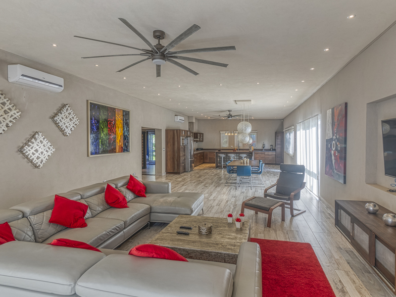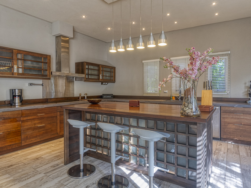 This beautiful property in Manuel Antonio was finished in October of 2016. The 3 story villa offers a spacious roof terrace with a stylish lounge area and pool. The property features high 10 foot ceilings, 12V LED lighting throughout the home, high speed internet and cable TV, and custom made furniture. On the first level of the home you can find the two-car garage, freezer, and storage area. The first level also has a fully equipped gymnasium and a 1,125 square foot apartment that has separate access, a small garden, washer, kitchen, bedroom, and bathroom. An Excellent independent area of the property to be used as a separate rental or an area for extra privacy for guests.