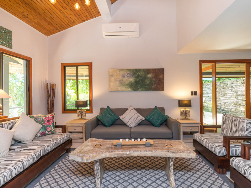 Access is down a secluded, private road. Enter via a secure gate with code lock next to covered parking for two vehicles. Up a short set of stairs, you arrive at a lovely pool with a natural stone wall surrounded by a large deck set with several seating areas and a full gas BBQ, outdoor kitchen, dining area, and Bluetooth speakers. There is enough space to entertain all those friends who’ll want to come and enjoy this unique piece of paradise.