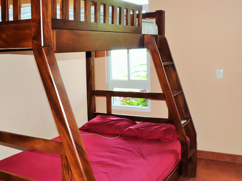 Plenty of room for family and friends in this family-friendly, solidly built dream house. The lower floor has two bedrooms, each with bunk beds to maximize sleeping space as well as a full bathroom shared by both downstairs rooms. Storage including armoires in each room, closets and utility room that could be used as an owner’s closet. The common area includes a big living room with large screen TV and an open concept modern North American grade kitchen with breakfast bar and family size kitchen table perfect for preparing meals with the family all together while enjoying the incredible ocean and jungle views. The upstairs features two sizable master bedrooms, both with king beds, en-suite bathrooms, and access to the 2nd story balcony with wide open views of the sparkling Pacific Ocean.