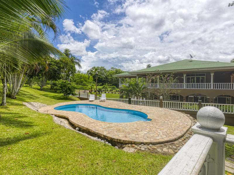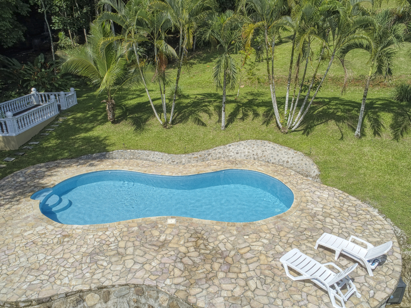 The additional 13-acre perimeter includes a stocked Tilapia pond (with fountain) naturally fed by the quebrada, fenced pasture land, and primary forests. In true hacienda style, the property includes a 3,300 square foot, under roof, caretaker's casita alongside a completely renovated 5 stall horse stable and gardener's shed, each with its own 3/4 bath.