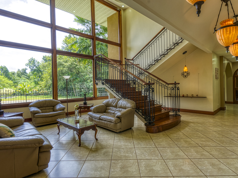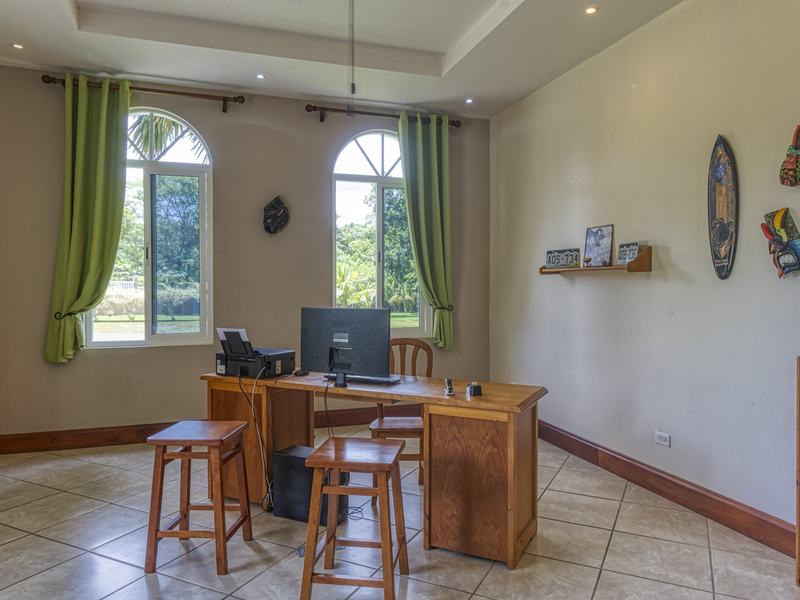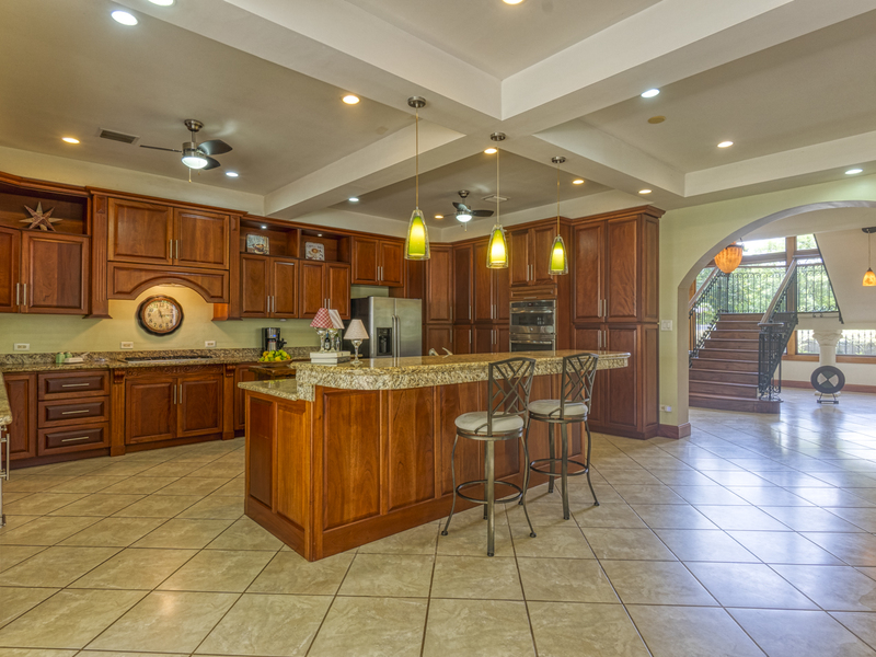 Casa Quebrada's first floor boasts a formal living room/atrium with a 25-foot high coffered ceiling and wall of windows capturing the majestic beauty of Cerro Chirripo and plentiful night time star gazing. There is a guest bedroom with en suite bath and a 2nd large bedroom/office also with views of Chirripo, as well as a large formal dining room with coffered ceiling. The spacious, open gourmet kitchen features beautiful slab granite counters, including a breakfast bar with prep sink. New SS appliances and a country cook island make entertaining a delight.