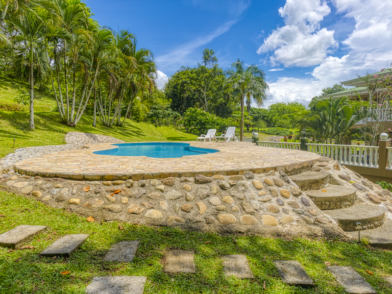 Casa Quebrada with its botanical park like, private setting is a secluded, thoughtfully planned luxury home and hobby farm located on 31 acres of prime Rio General river frontage. Nestled among 3 cascading waterfalls and 2 quebradas, creeks, it boasts an elevated buildable lot with private drive and panoramic views. Additional usable acreage makes the development possibilities endless: family estate, retreat or retirement playground, yoga or nature sanctuary, horse and cattle ranch, B&B or a bio-diverse sustainable living opportunity with excellent water sources, among others.