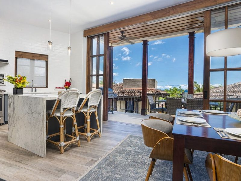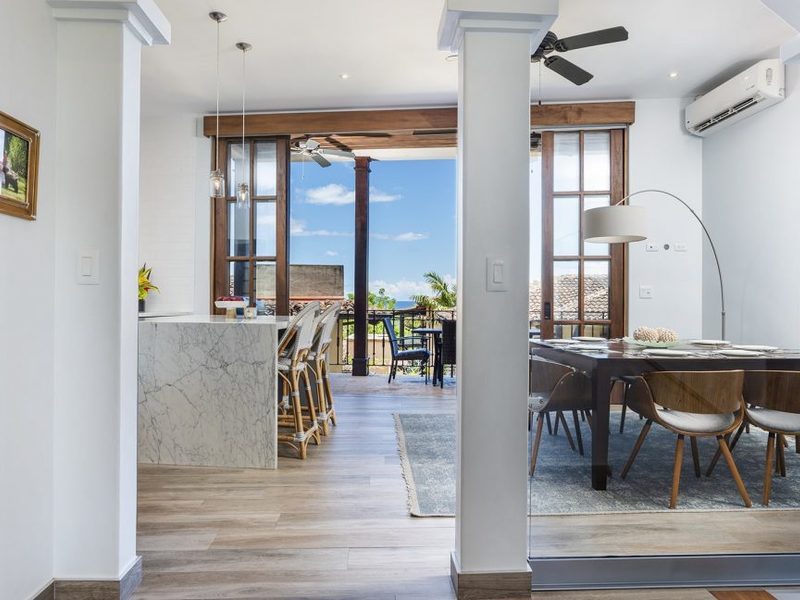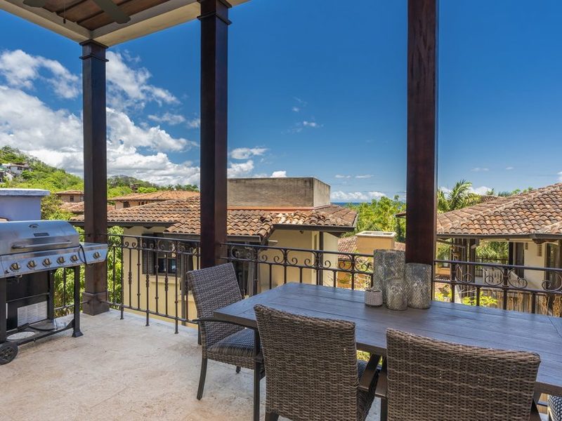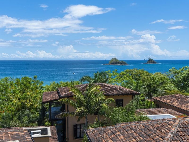 This 4 Bedroom, 4.5 Bath ocean view home is truly a masterpiece. With three stories of living space, there’s plenty of space to spread out and relax. Located only steps from the Pacific Ocean and walking distance to the beach club, two gyms, grocery store, restaurants, a spa, shops, and even the Santarena boutique hotel. Las Catalinas is a walkable beachfront town inspired by a concept of Mediterranean architecture, community living and is completely car-free. Over 1,000 acres of tropical dry forest, as well as miles of world-class hiking and biking trails, surround the Las Catalinas community. This convenient location, which is less than 1 hour from the Liberia International airport and only a 12-minute drive from Flamingo Beach and the Marina that is currently under construction. As you enter the home, you will appreciate the unique architectural details, plunge pool, and foyer area. The main level features 2 Bedrooms, 2 bathrooms, with access to a covered balcony. As we head to the second story, you will arrive at the main living area with the kitchen, dining, and living areas. On this level, you also have a guest bathroom and laundry room. The kitchen is spacious and features wood cabinetry, stainless steel appliances, and granite countertops. On this level, you also have another covered balcony area with an outdoor dining table and BBQ area, and wonderful views of the ocean and town. The third level of the home features the master bedroom and third guest bedroom. Each bedroom is spacious and features its own ensuite bathroom and teak wood vaulted ceilings. The best place to spend your afternoons is on the master bedroom balcony. From this vantage point, you can both hear and see the waves at nearby Playa Danta.