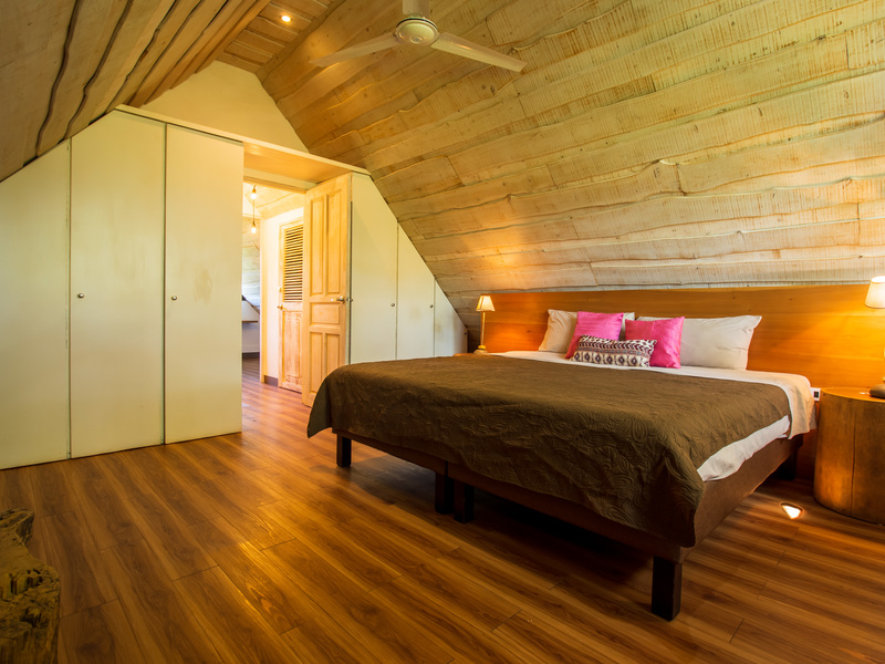 This perfect rental income property sits on a large 5546 M2 land. It is built in wood and concrete. The ground floor consists of a large open space, composed of a fully equipped kitchen, dining room, living room, and a bathroom. The home was built with an eye on details such as wooden floors, French decoration, and unique pieces of tasteful furniture. There is also a wide sheltered terrace with a dining table facing the garden and the pool. All the four bedrooms, with king size beds, and 2 full bathrooms are located on the first floor. The house hosts up to 10 people.